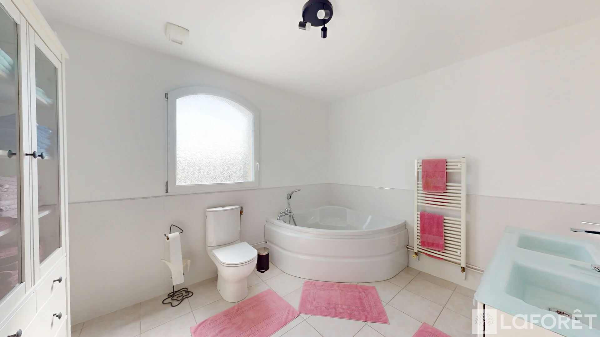 À l'étage, un vaste palier dessert quatre chambres, dont une avec dressing, ainsi qu'une salle de bains familiale. L'agencement a été pensé pour offrir confort et intimité à chacun.