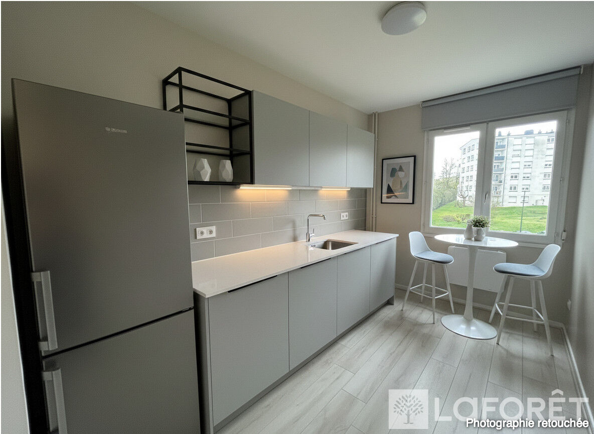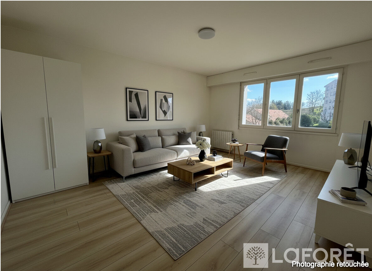 Appartement offrant de beaux volumes, une pièce de vie lumineuse, cuisine aménagée avec arrière-cuisine, chambre, salle de bain et nombreux placards intégrés.