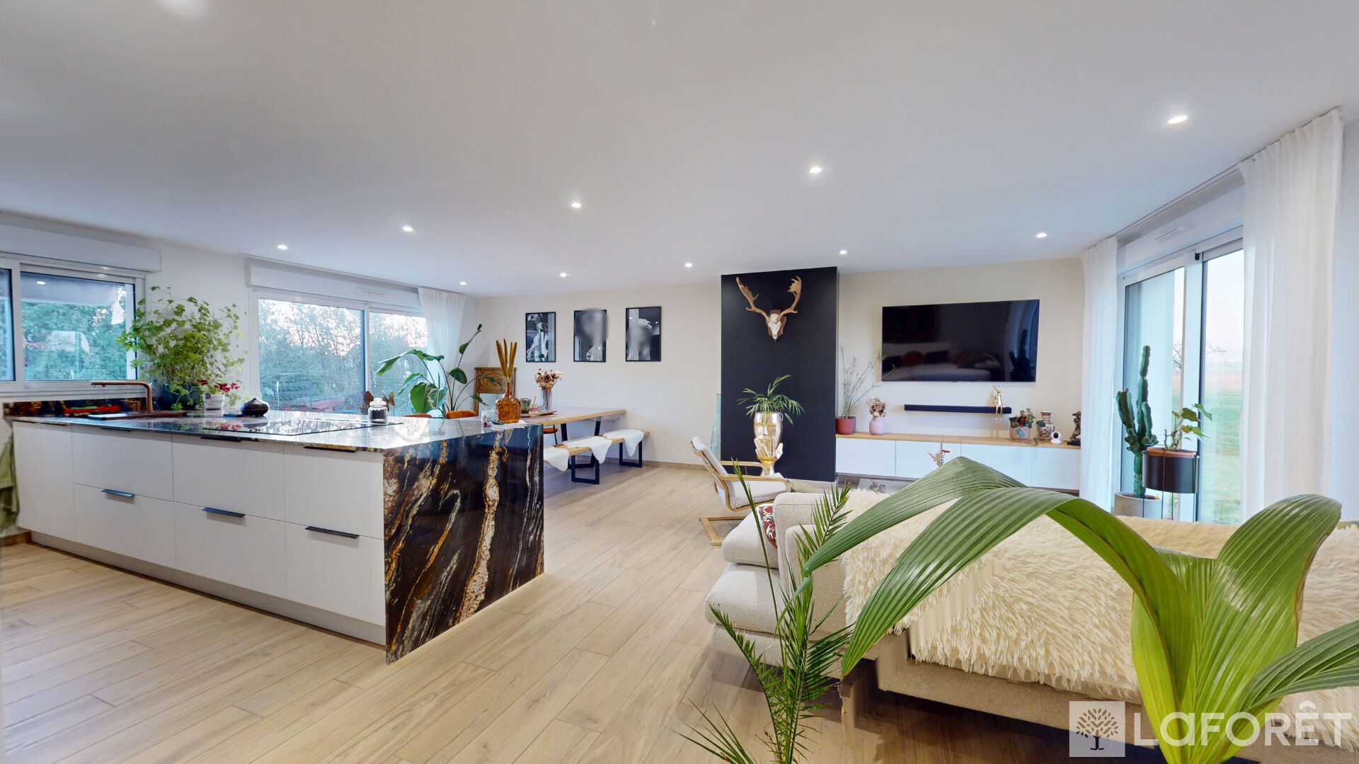 Vous serez séduit par sa très belle cuisine entièrement équipée, ouverte sur un lumineux salon-séjour, créant un espace de vie convivial et chaleureux.