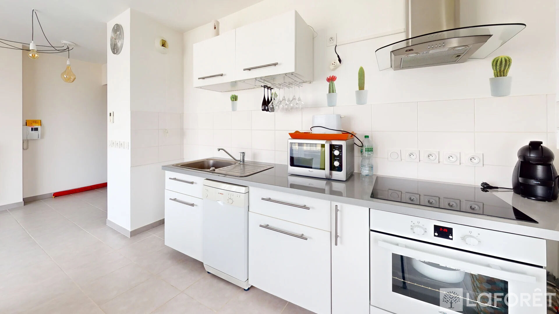 L'appartement se compose d'un séjour lumineux avec cuisine intégrée, ouvrant sur une agréable terrasse de 7 m², exposée idéalement, donnant sur l'arrière de la résidence et au calme absolu. Aucun appartement au-dessus de la terrasse, un vrai plus en termes de tranquillité.