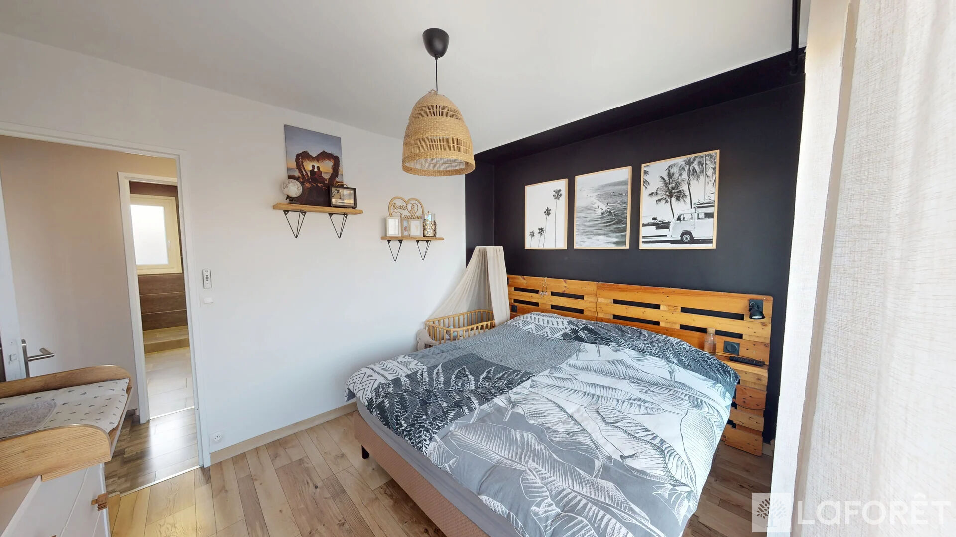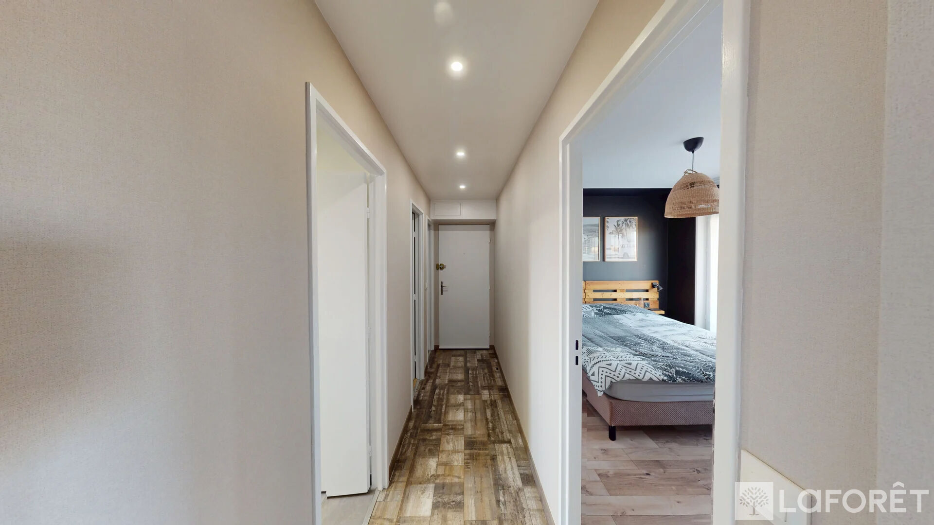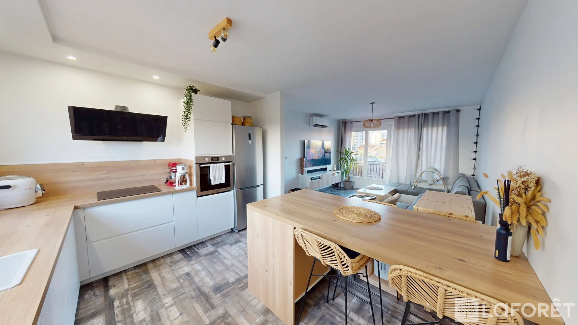 Traversant et baigné de lumière, il propose des espaces de vie agréables, décorés et meublés avec goût, offrant une atmosphère chaleureuse et moderne. Le salon ainsi que la chambre donnent directement accès à un balcon, parfait pour profiter des beaux jours en toute tranquillité.