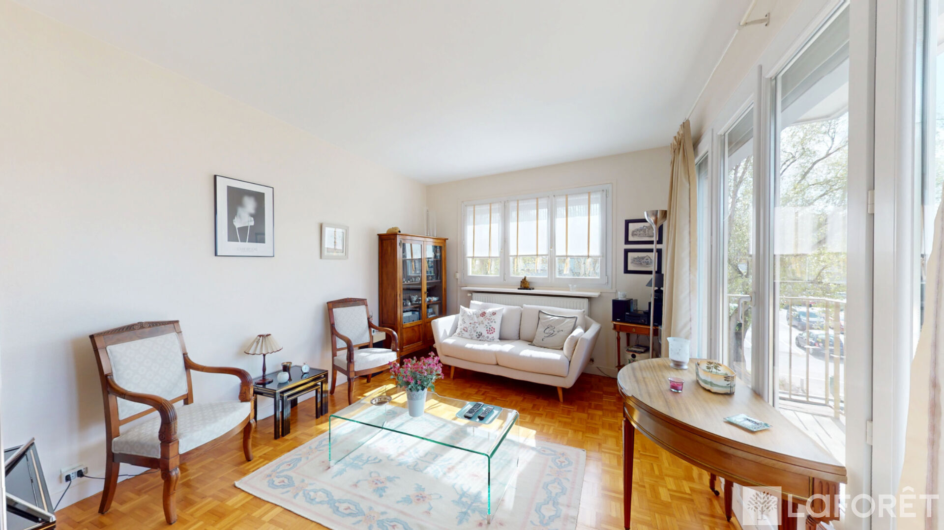 L'appartement se compose de deux chambres, d'une salle de douche spacieuse, ainsi que d'un double salon-séjour disposant d'un balcon filant. L'appartement est particulièrement lumineux grâce à ses trois expositions, apportant une belle luminosité tout au long de la journée.
