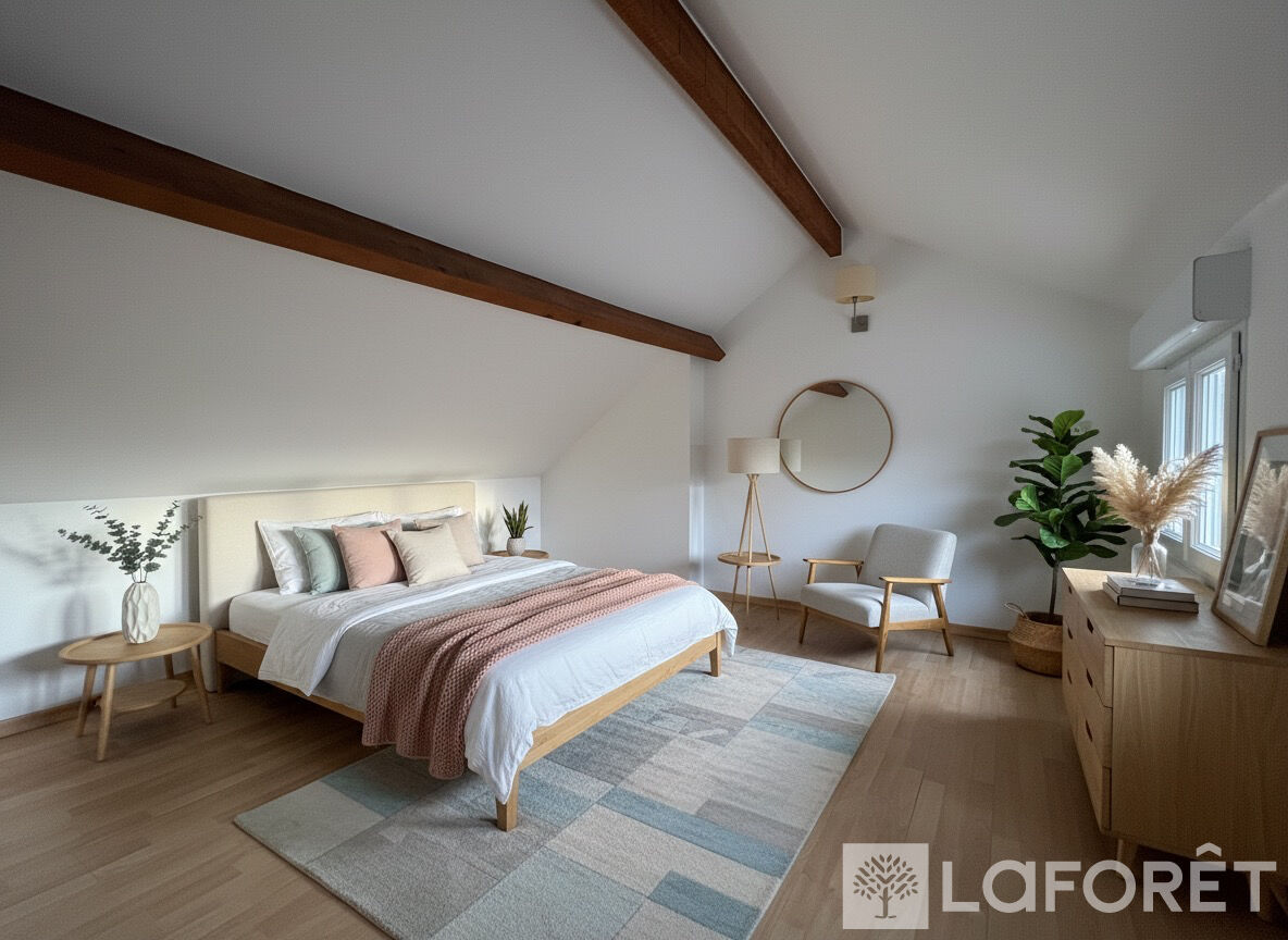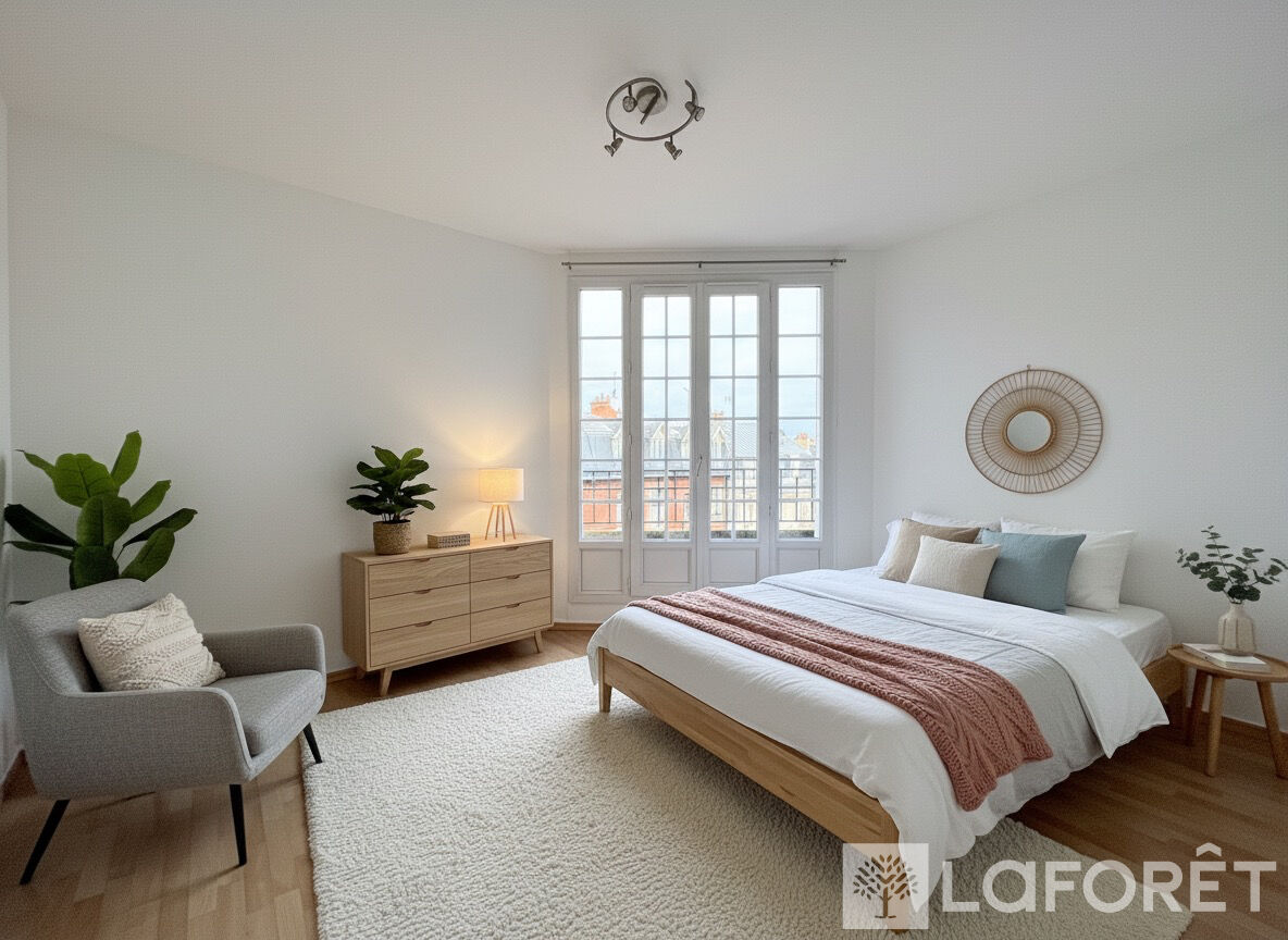 Le bien se compose de quatre chambres, dont trois ouvrent sur un balcon filant côté rue, offrant une perspective élégante et urbaine.