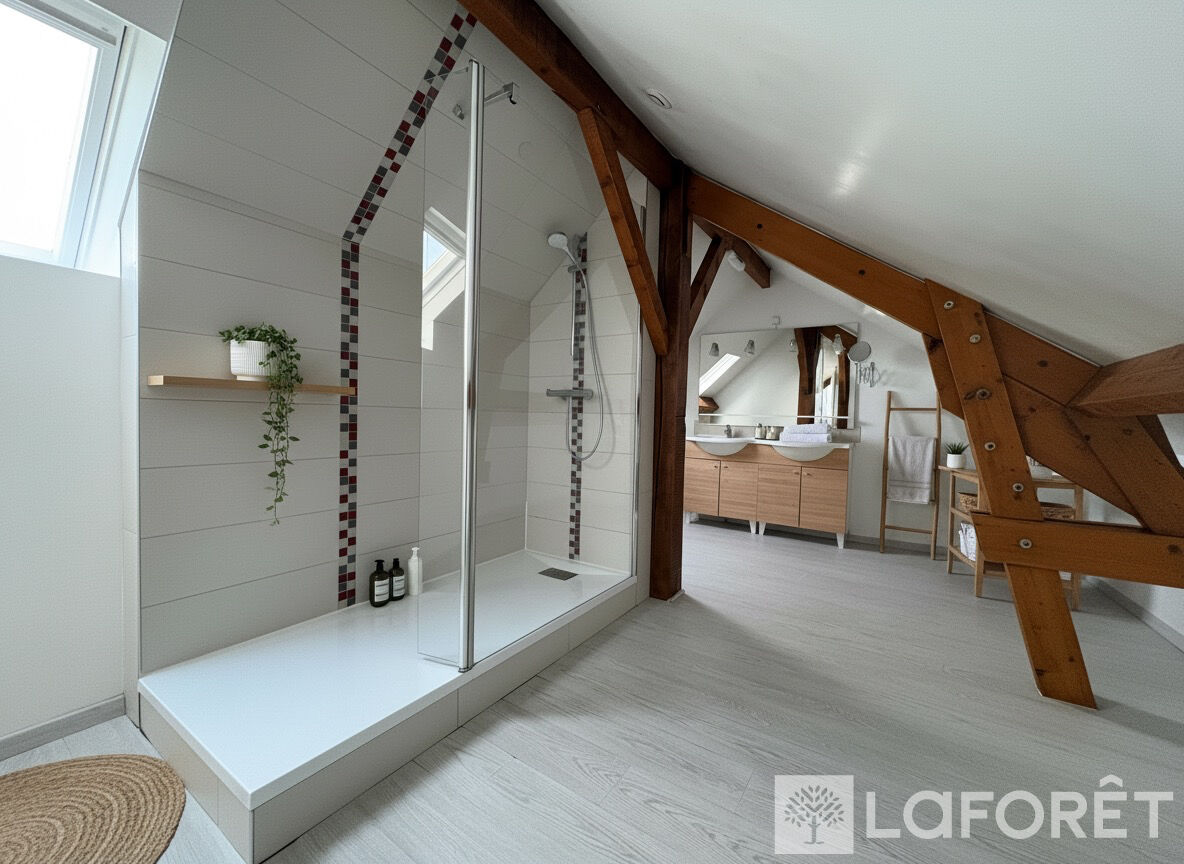 Deux salles de douche viennent parfaire le confort de cet appartement familial.