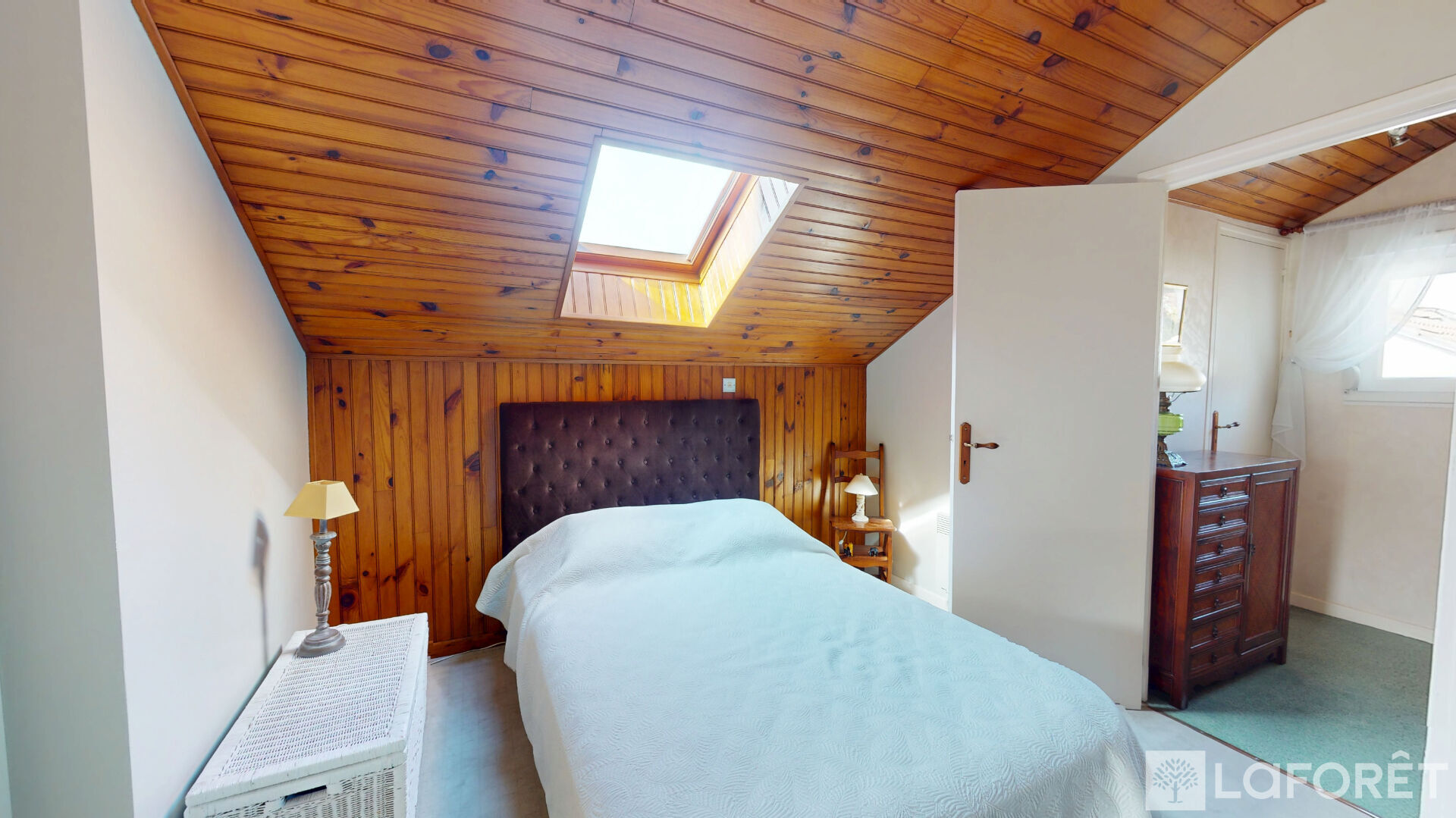 Dès l'entrée, vous serez séduit par un spacieux salon-séjour avec toit cathédrale, offrant une magnifique luminosité, ainsi qu'une cuisine aménagée et équipée.
