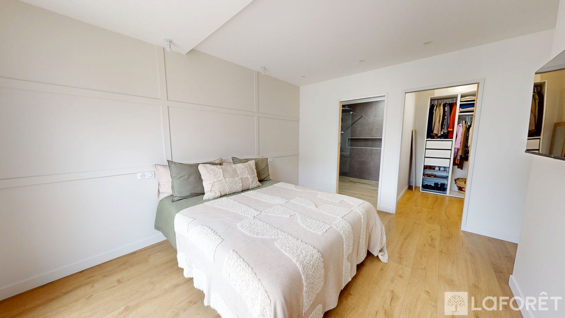 Le rez-de-chaussée propose une superbe suite parentale de plain-pied, véritable cocon privé avec dressing sur mesure, salle de douche élégante et WC indépendant.
