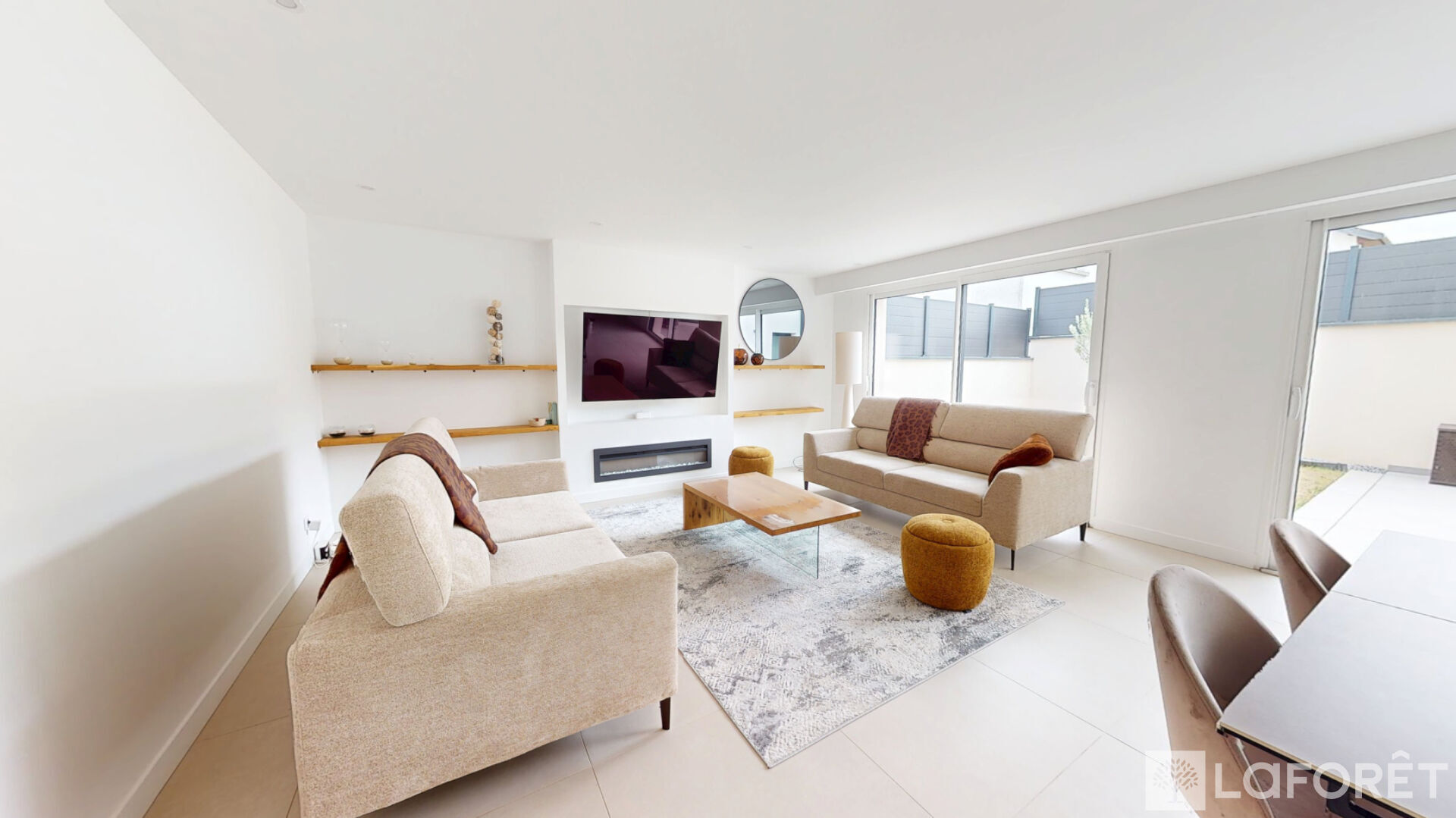 Dès l'entrée, les volumes généreux et la luminosité naturelle s'imposent. La pièce de vie, sublimée par de larges baies vitrées, offre une atmosphère chaleureuse et élégante, avec une parfaite harmonie entre intérieur et extérieur.