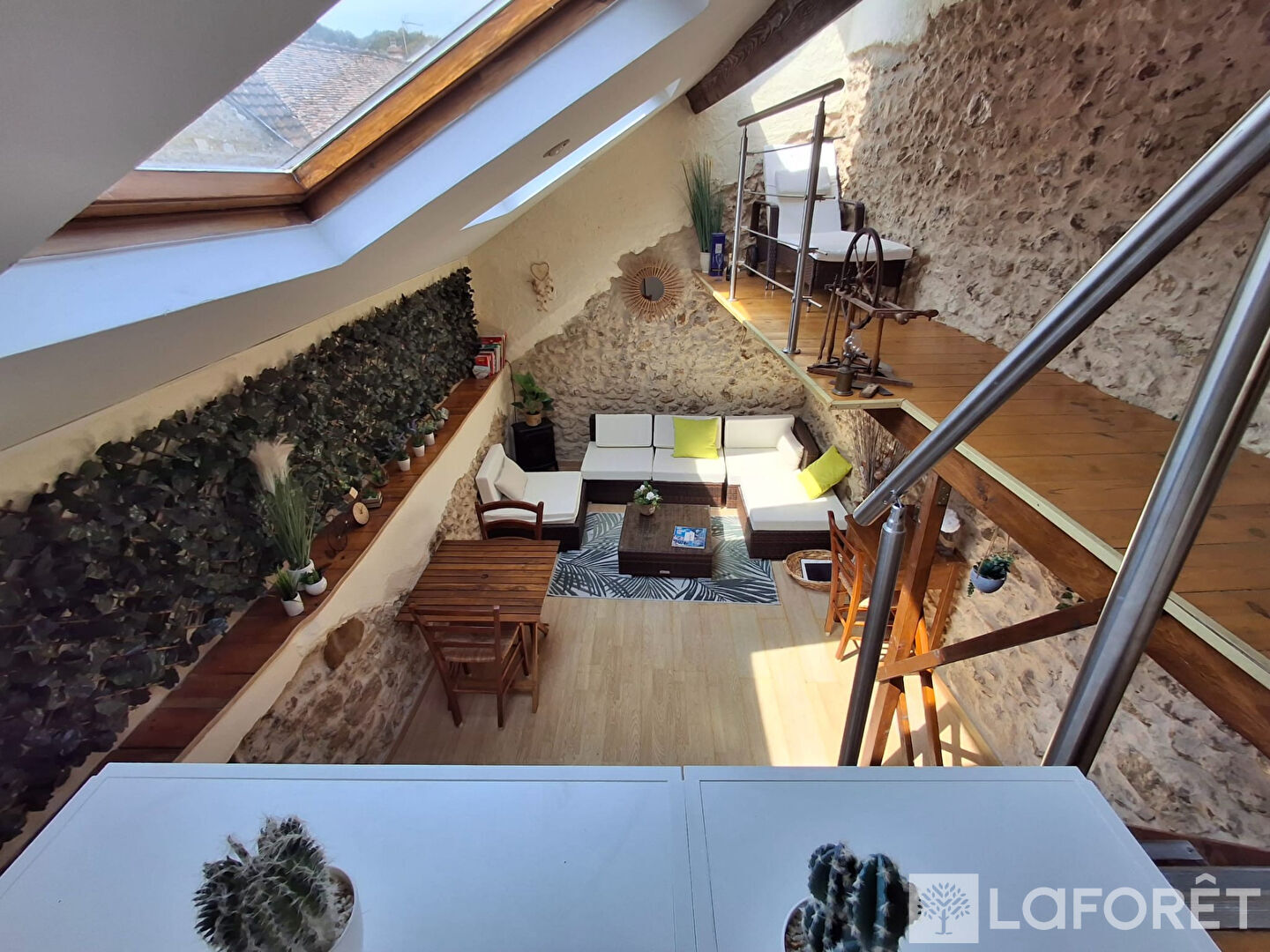 Au niveau inférieur se trouve une salle d'eau moderne avec toilettes. À l'étage supérieur, une belle chambre lumineuse vous attend, idéale pour un espace nuit cosy et reposant.