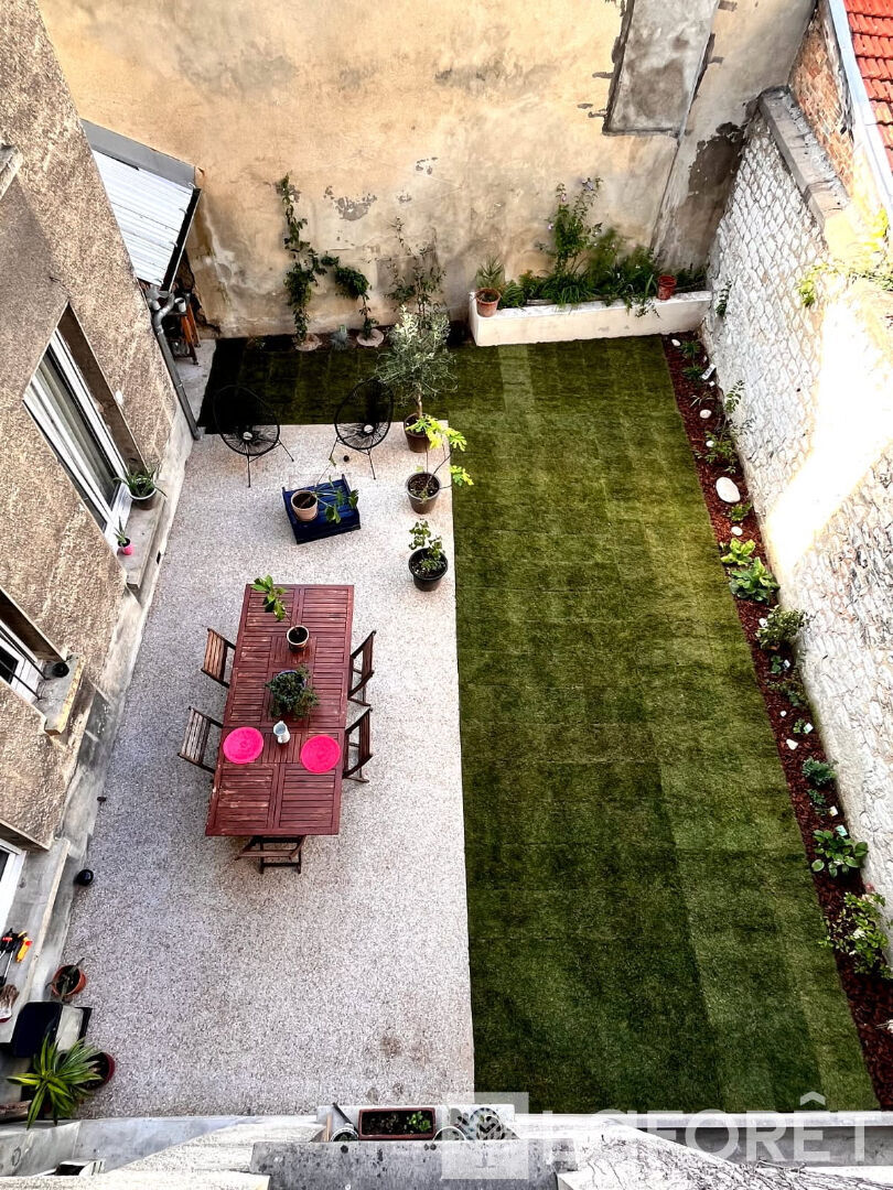 Appartement meublé en rez-de-chaussée lumineux comprenant une vaste pièce de vie, cuisine entièrement équipée et aménagée donnant sur une agréable cour privative, deux chambres spacieuses, une salle de bains avec douche et baignoire.