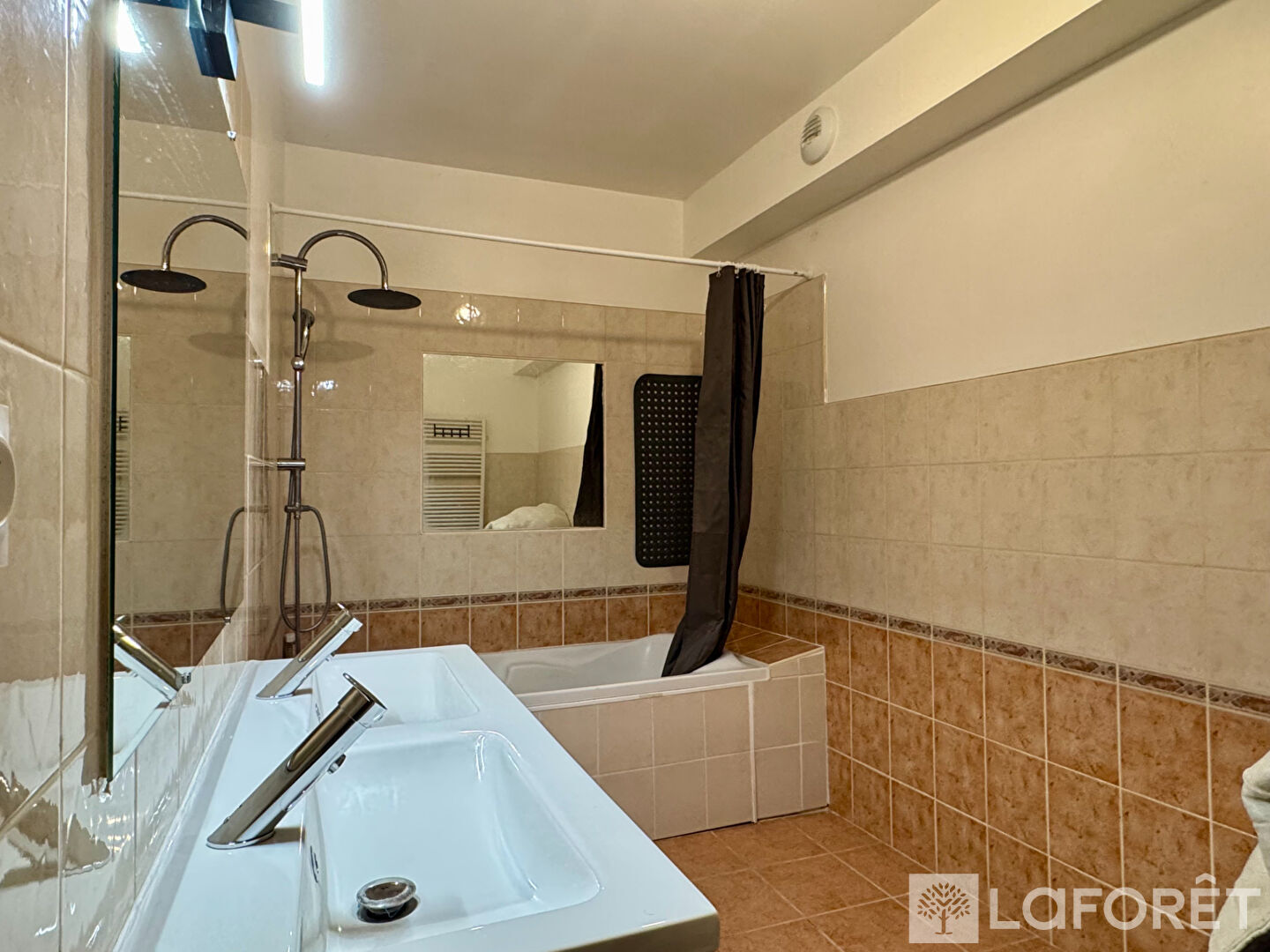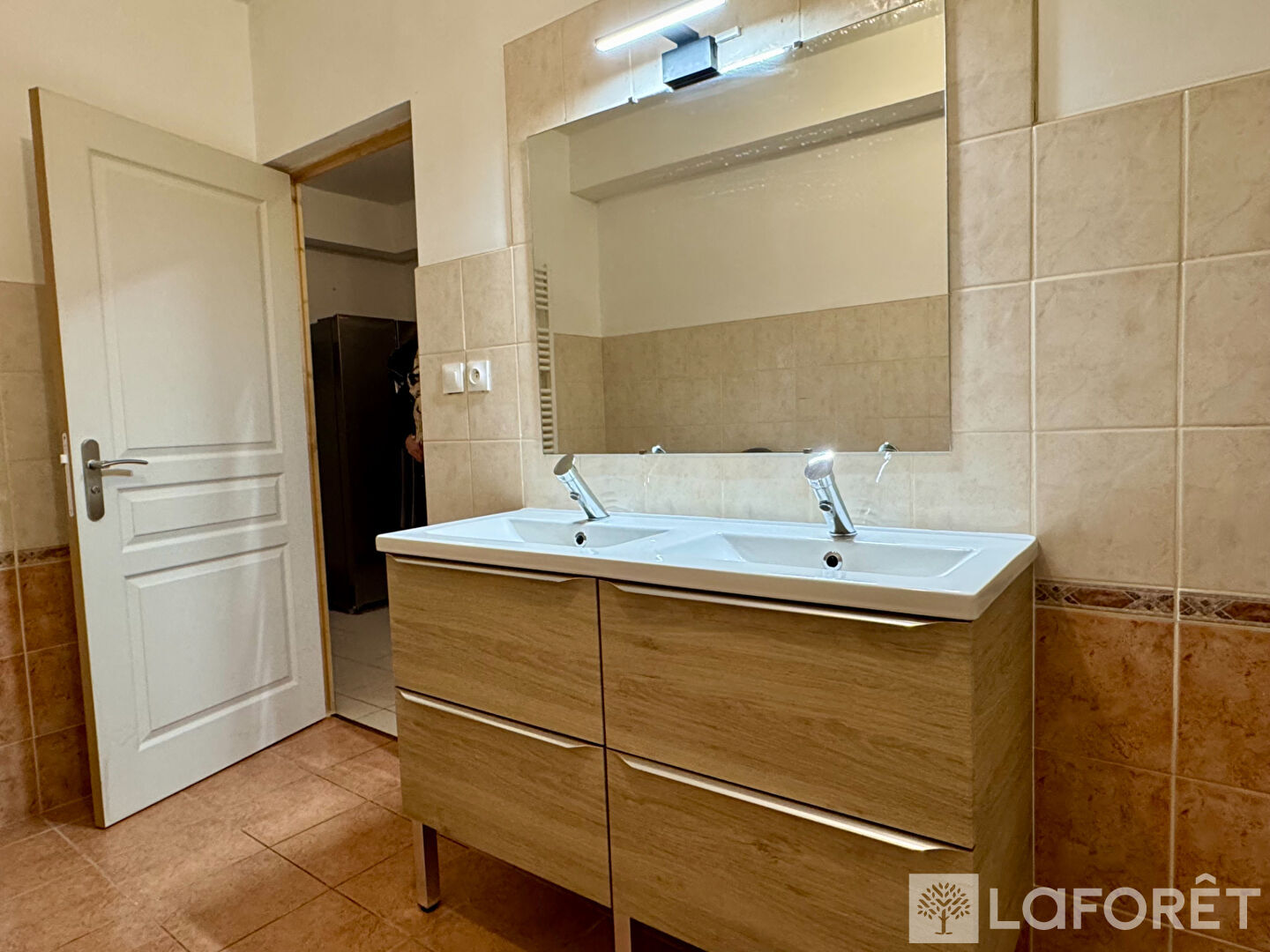 L'appartement dispose de deux chambres lumineuses, d'une salle de bains avec double vasque, ainsi que de WC séparés.