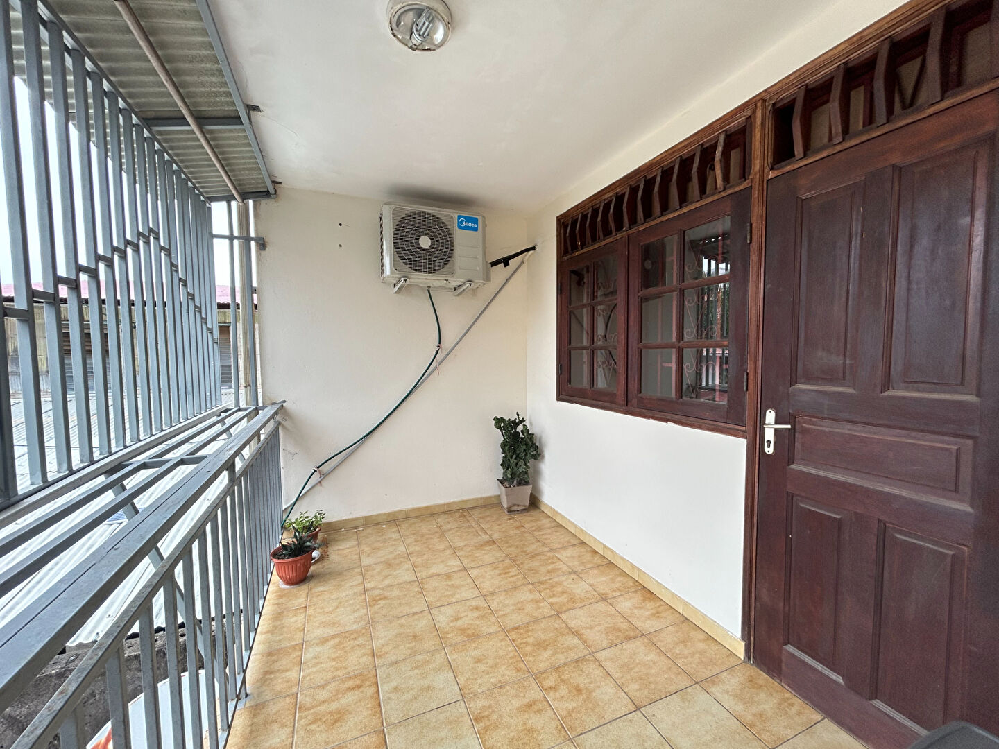 Il se compose d'un séjour lumineux, d'une cuisine aménagée, d'une buanderie, de deux chambres climatisées donnant accès à une terrasse, d'une salle d'eau, d'un WC indépendant, ainsi que d'un balcon avant.