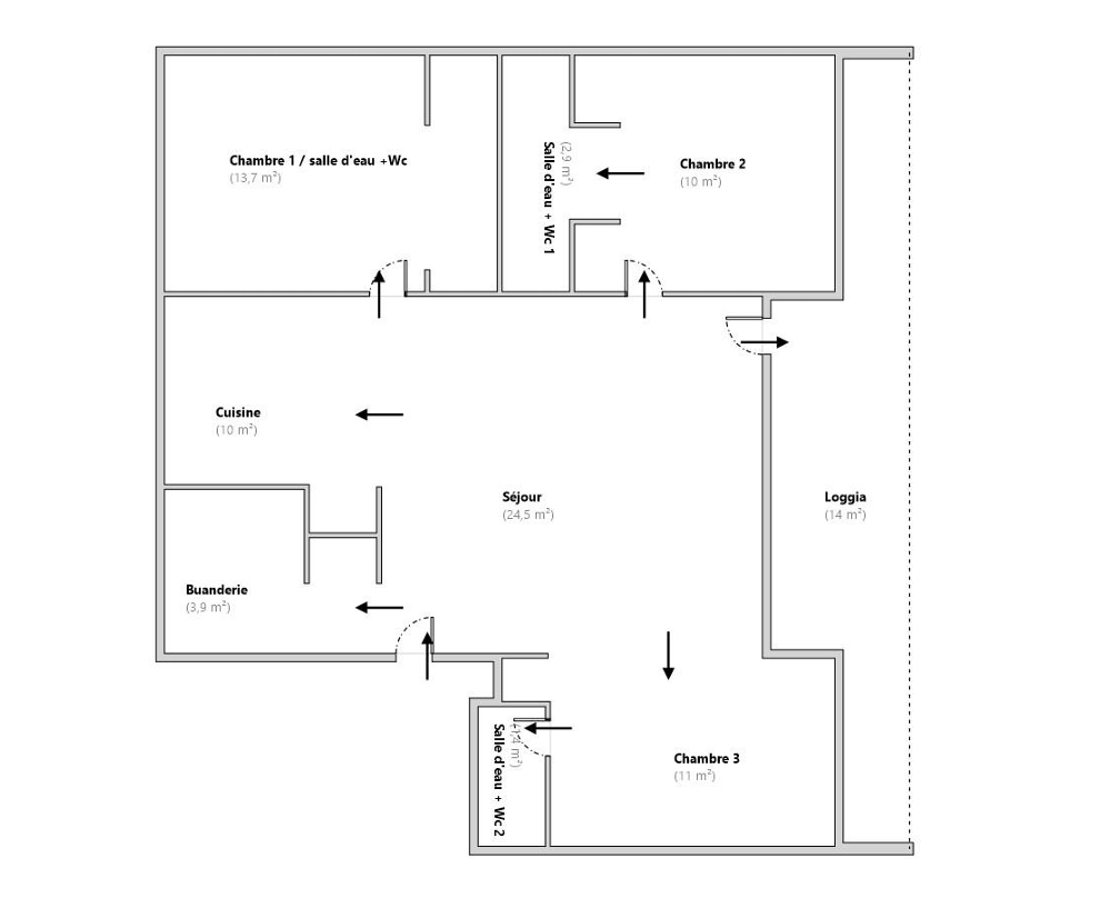 91 m² • 4 pièces • 2 chambres