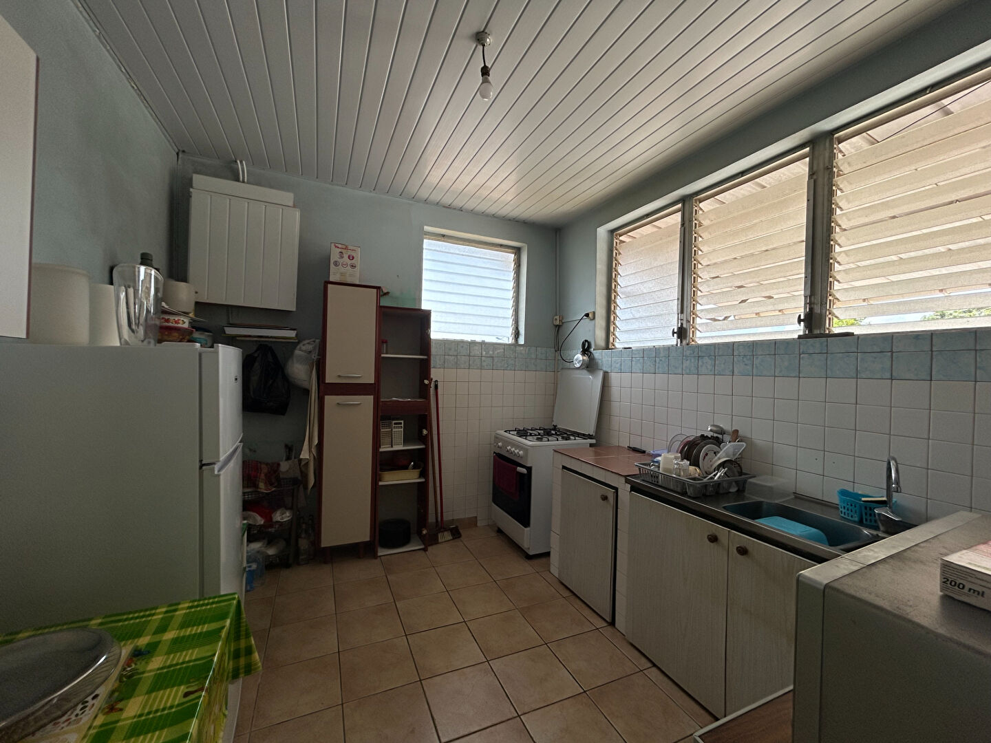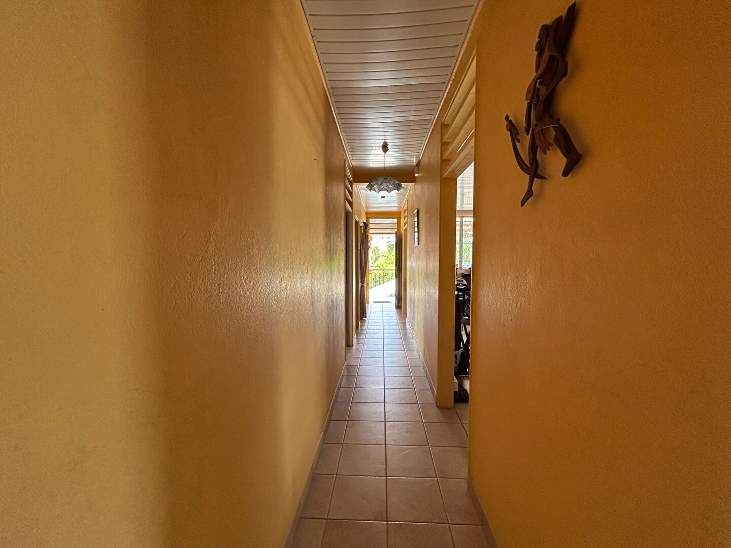 Le logement, dans son jus mais parfaitement entretenu, se compose d'un double séjour lumineux ouvrant sur un balcon, d'une cuisine aménagée, de trois chambres, de deux salles d'eau et d'un WC indépendant. Un hangar d'outillage en rez-de-chaussée vient compléter l'ensemble, ainsi qu'un carbet, et un garage couvert.