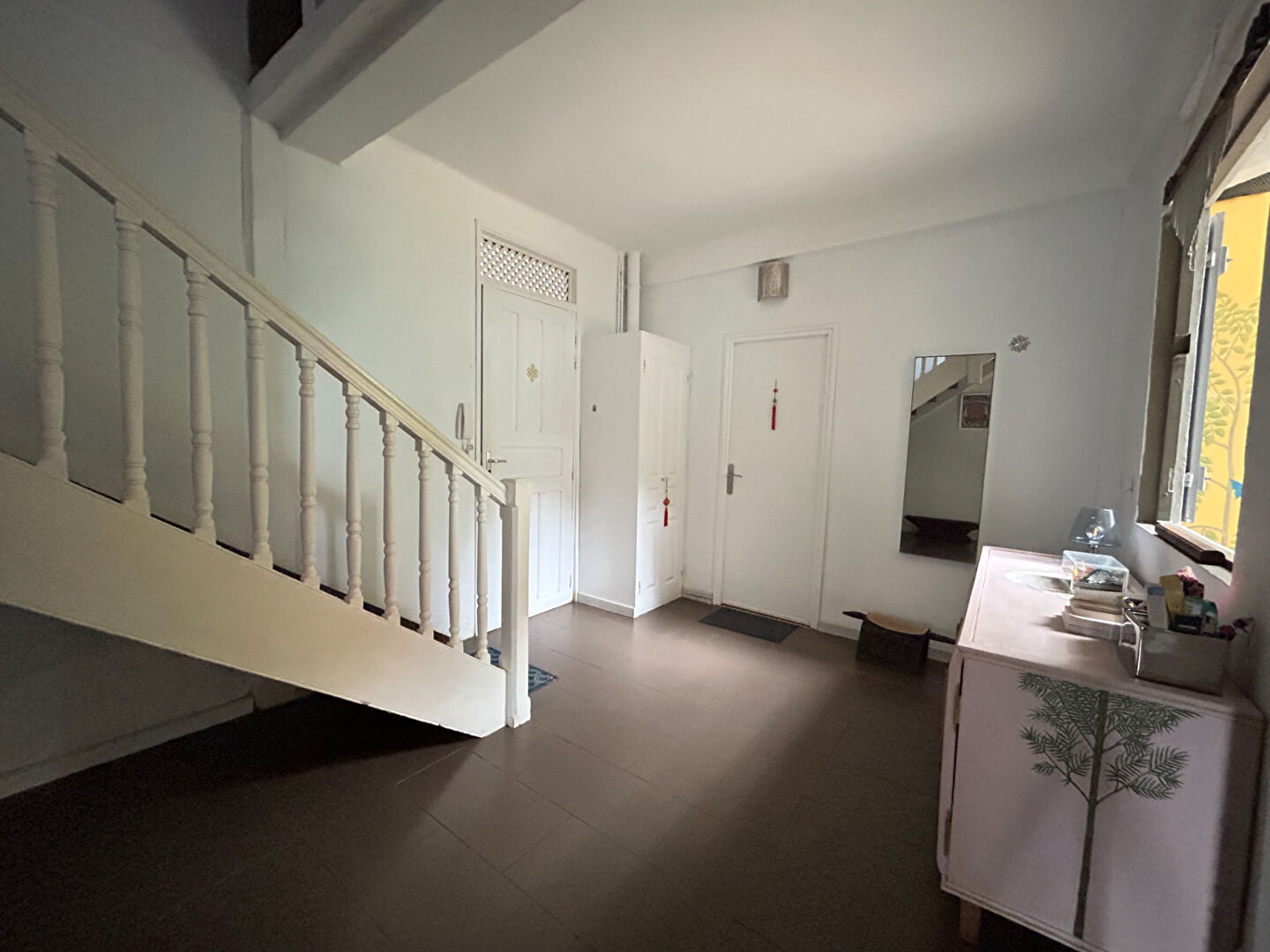 Au premier étage, une grande pièce principale dessert un palier, une salle de bain équipée d'une baignoire/douche et d'un WC, ainsi qu'un balcon agréable pour profiter de l'extérieur.