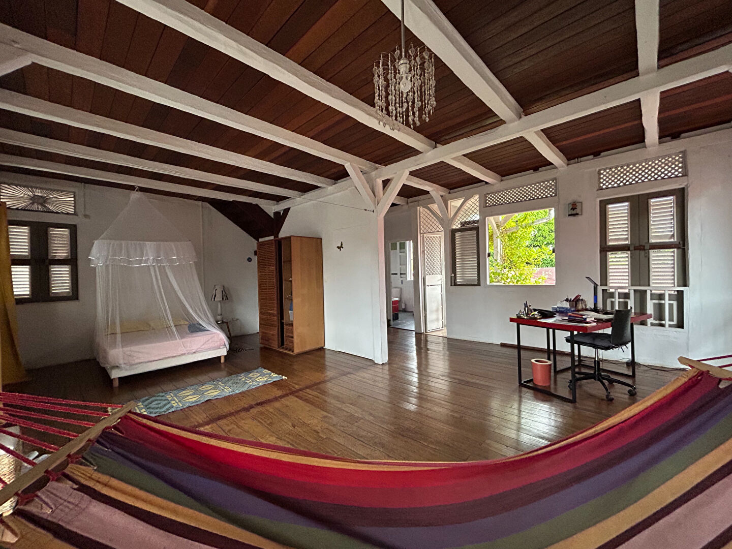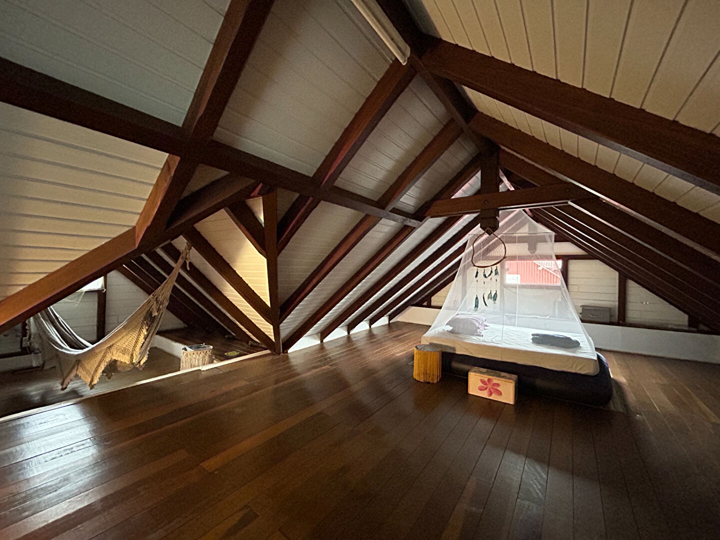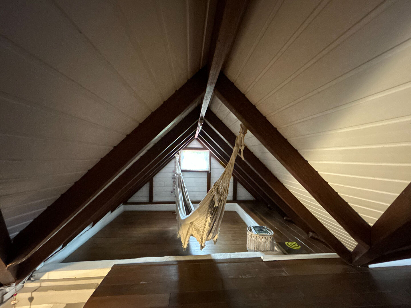 Le deuxième étage, aménagé sous les combles, offre une pièce unique idéale pour une chambre supplémentaire, un bureau ou un espace de loisirs.