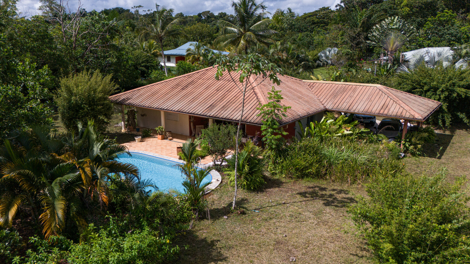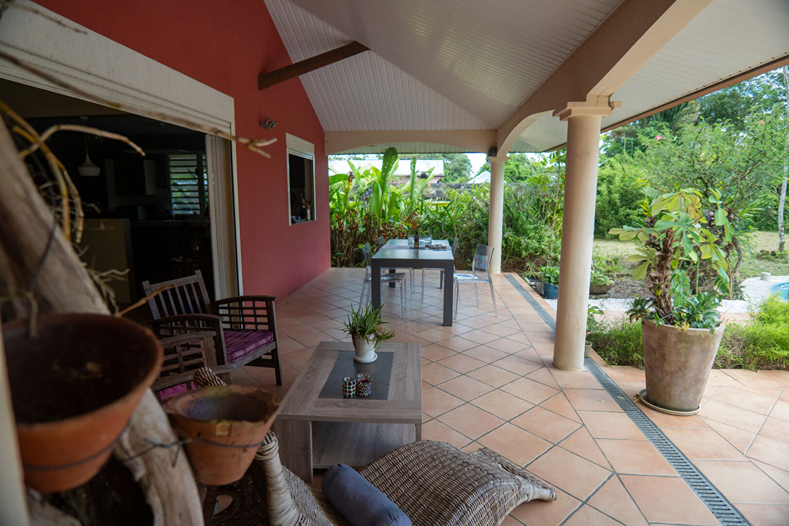 À l'extérieur, une belle terrasse de 35 m² vous offre un espace de vie convivial, complété par un abri voiture avec deux emplacements.
