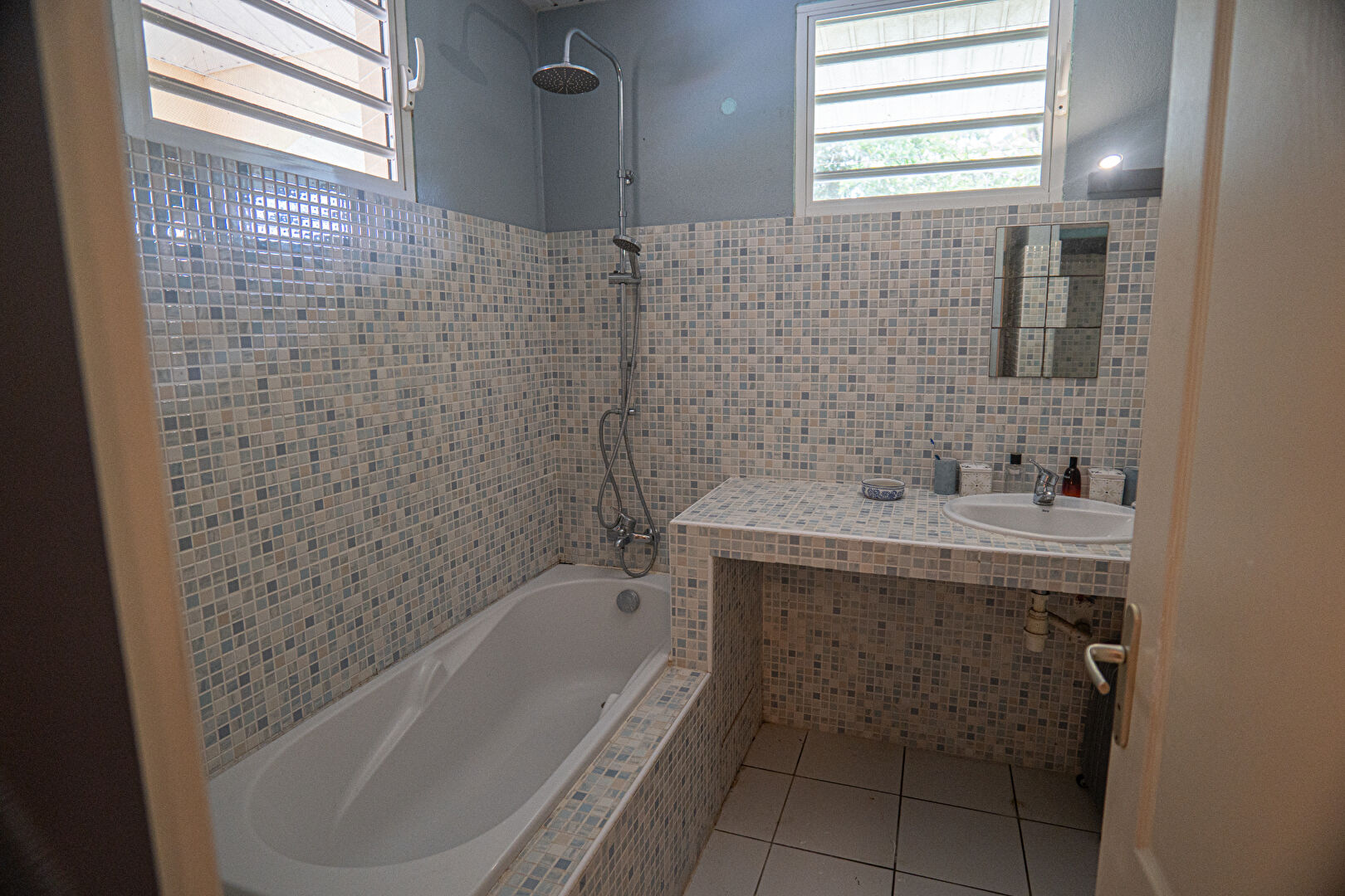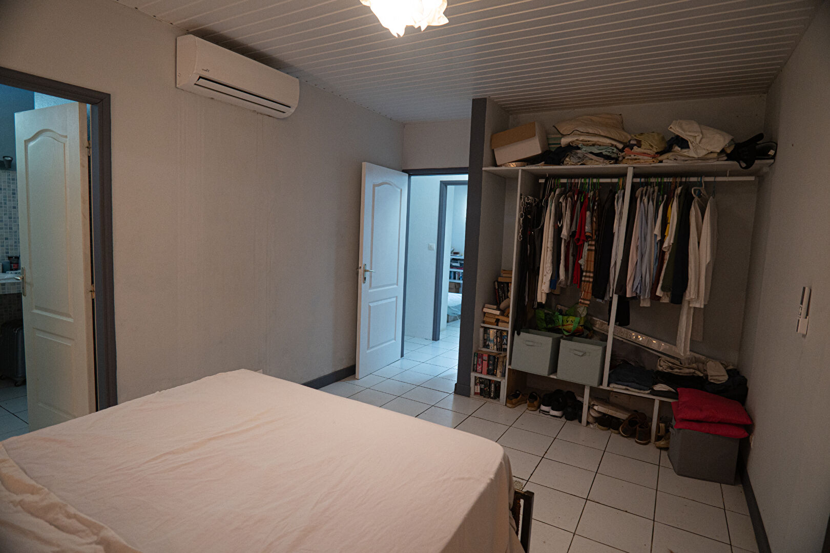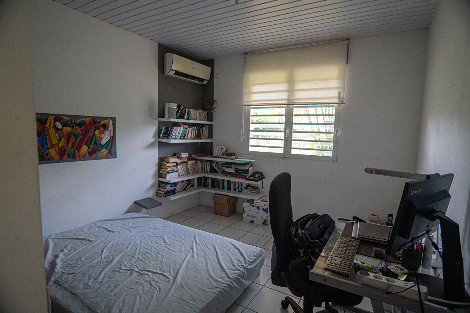 Elle se compose d'une cuisine séparée avec réserve, d'un séjour lumineux et d'un bureau ouvert sur le salon, facilement transformable en troisième chambre. Un dégagement dessert une suite parentale climatisée avec salle de bain et WC, une seconde chambre également climatisée, une salle d'eau indépendante et un WC séparé.