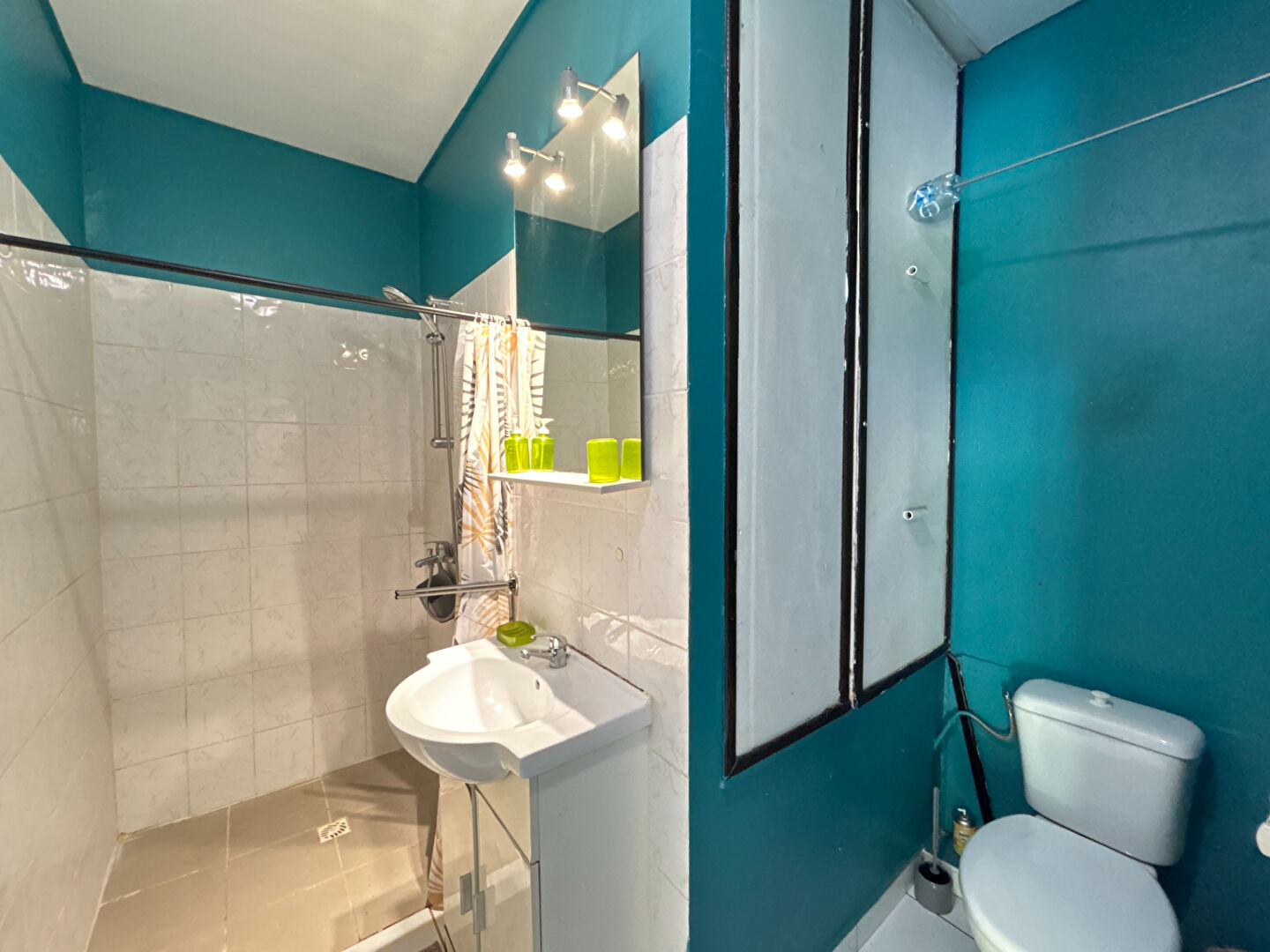 Le studio indépendant comprend une pièce principale climatisée avec coin cuisine et une salle d'eau avec WC. Il est loué 650 € par mois en meublé.