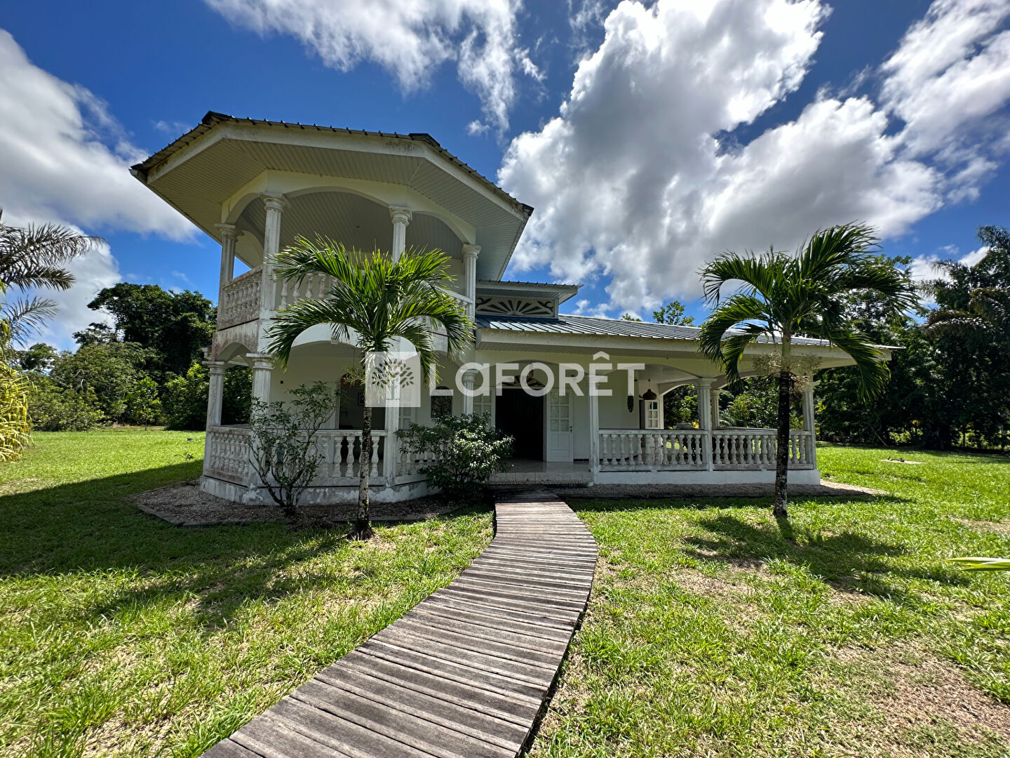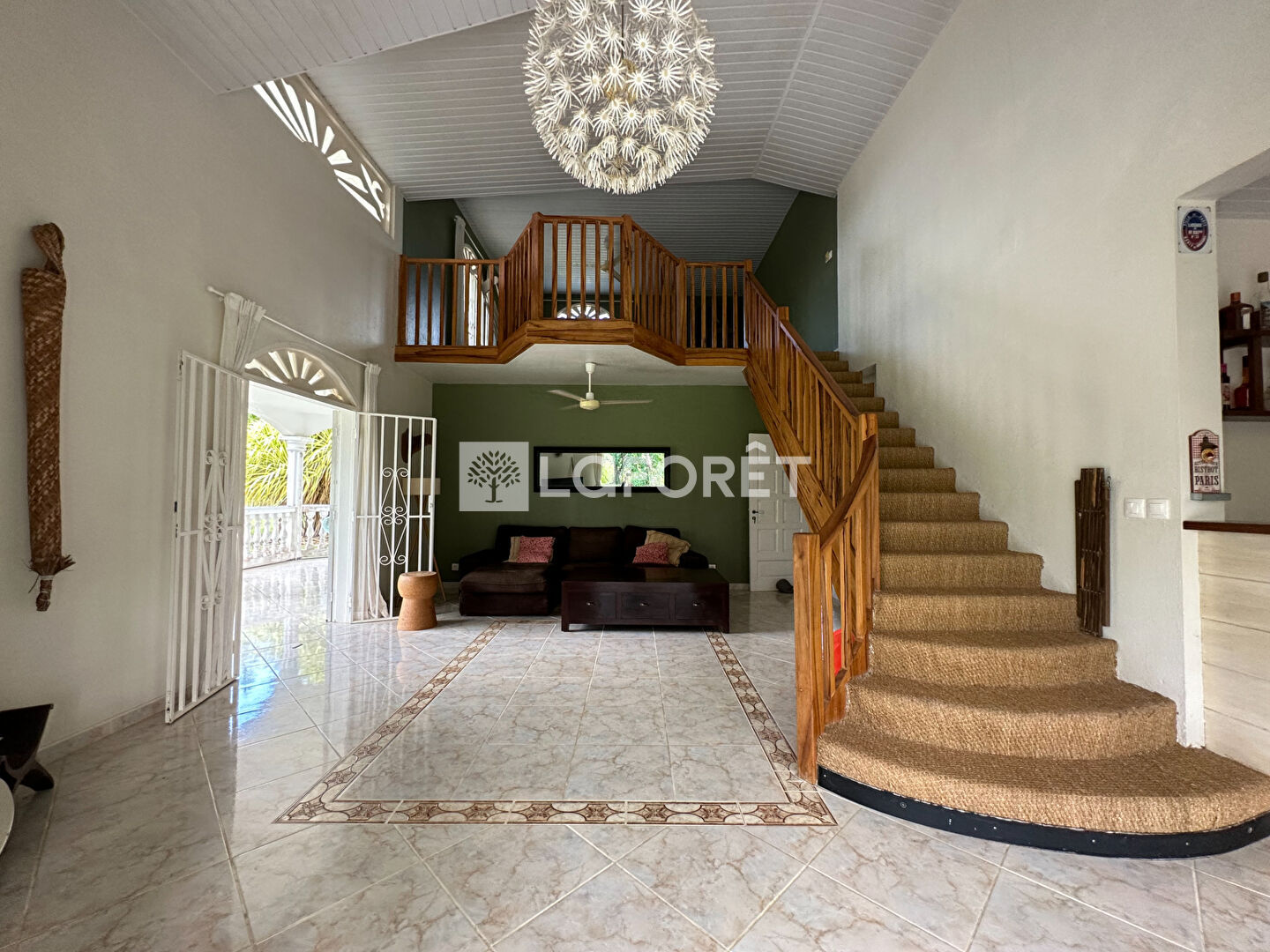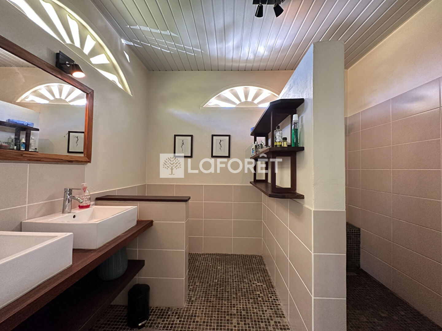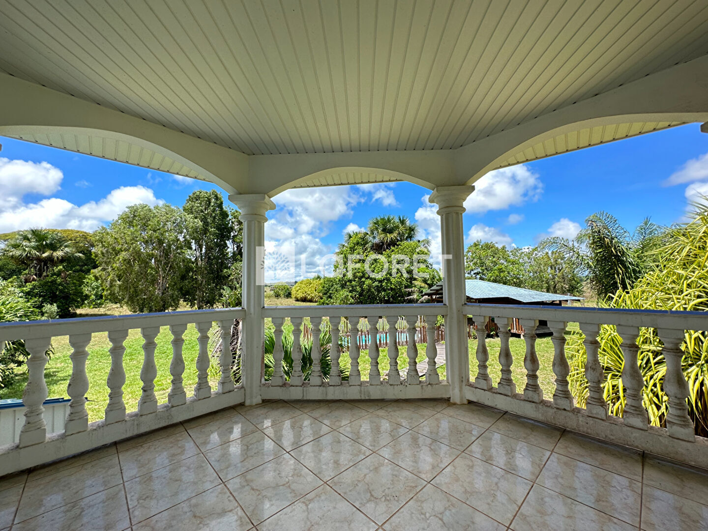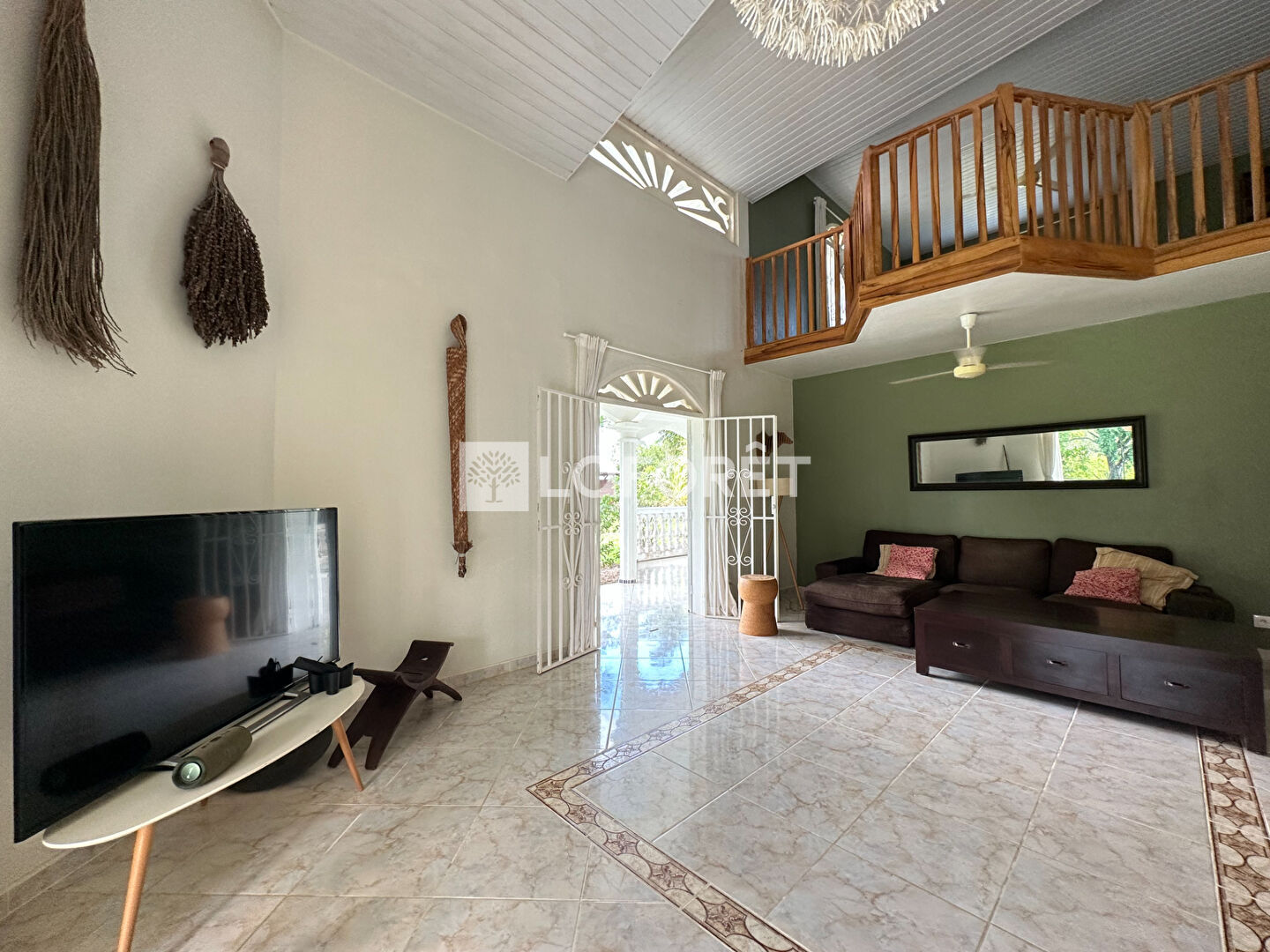 A l'extérieur, une terrasse carrelée et couverte, un abri de voiture, une piscine et un carbet.