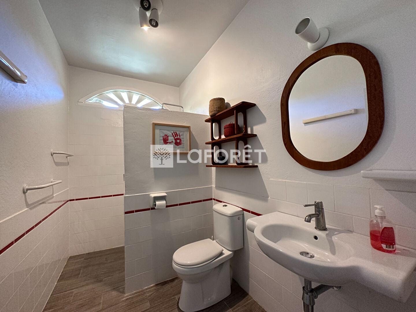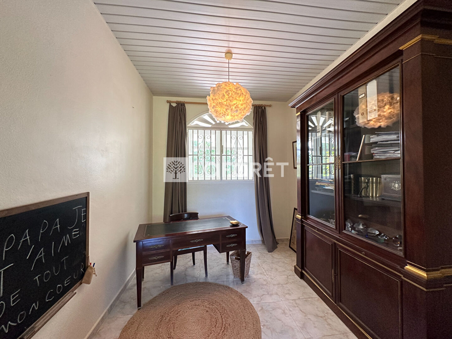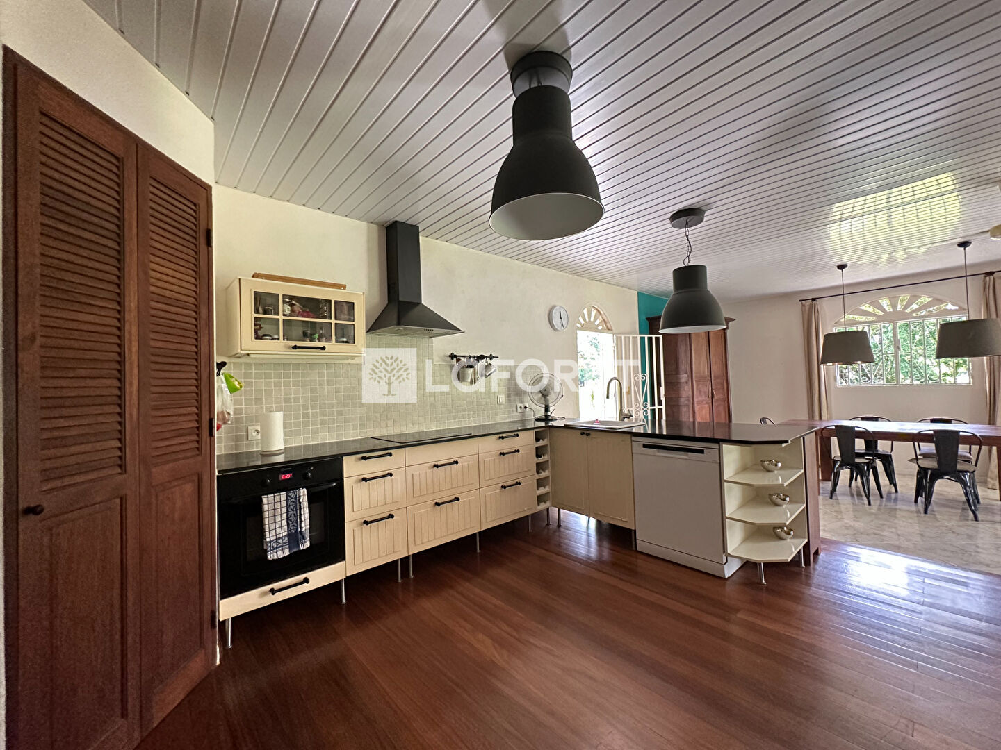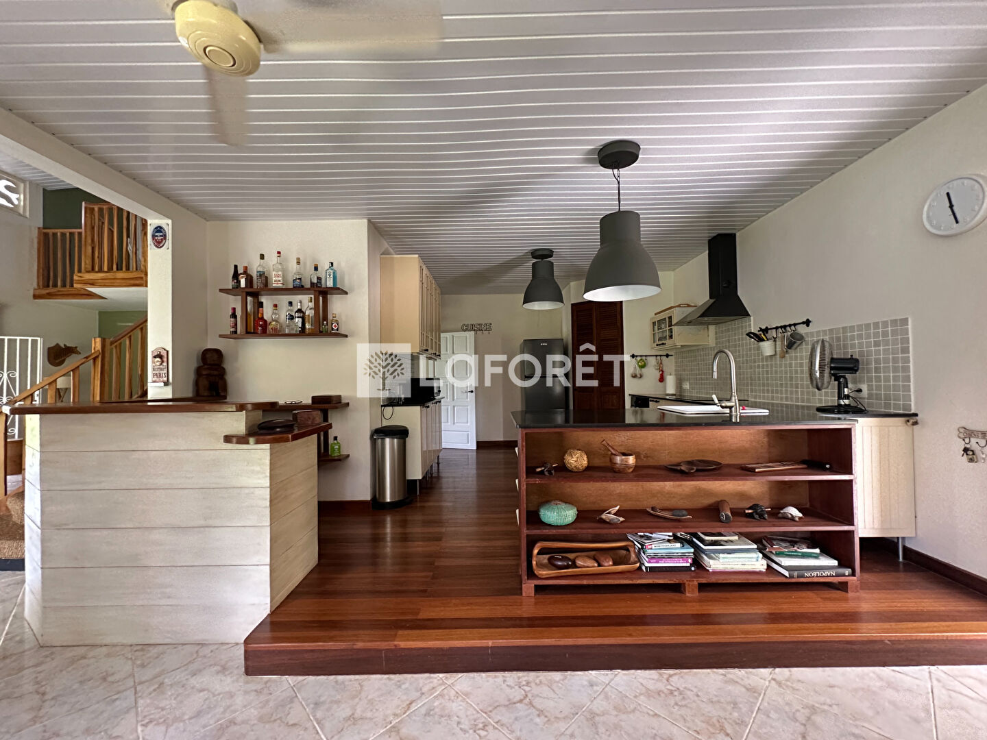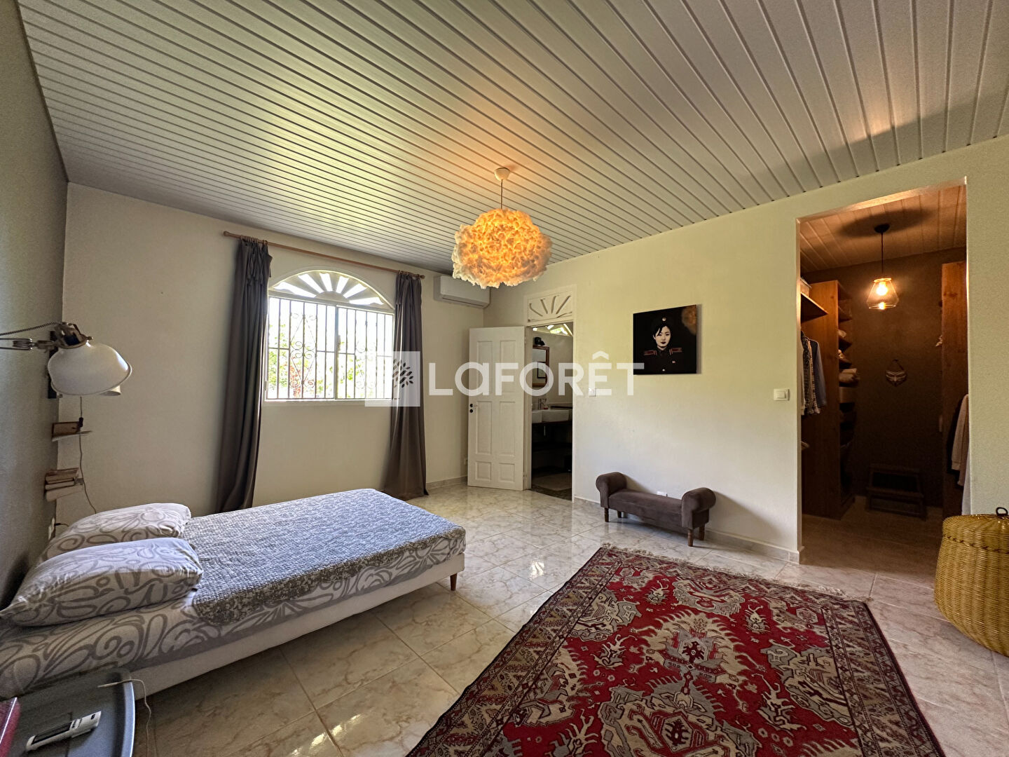 A l'extérieur, une terrasse carrelée et couverte, un abri de voiture, une piscine et un carbet.