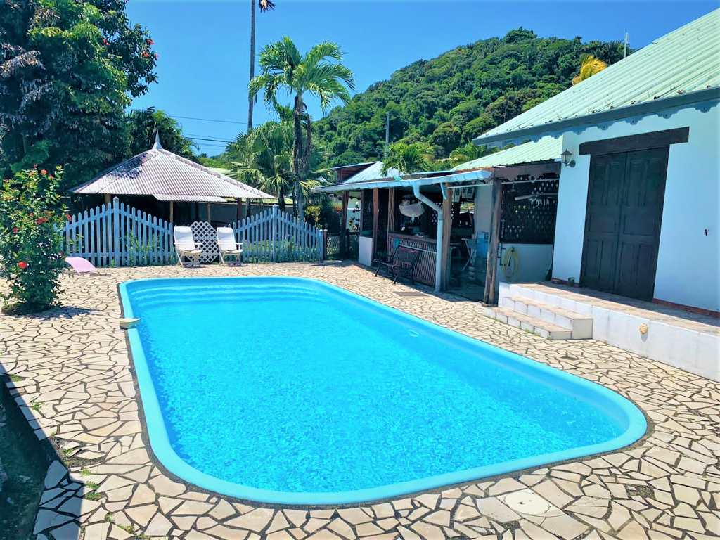 - Une maison individuelle comprenant une entrée, une cuisine, un double séjour, deux chambres avec leurs salles d'eau - WC attenantes, un WC séparé, une mezzanine, un débarras et à l'extérieur une terrasse, un cagibi, un carbet et une piscine