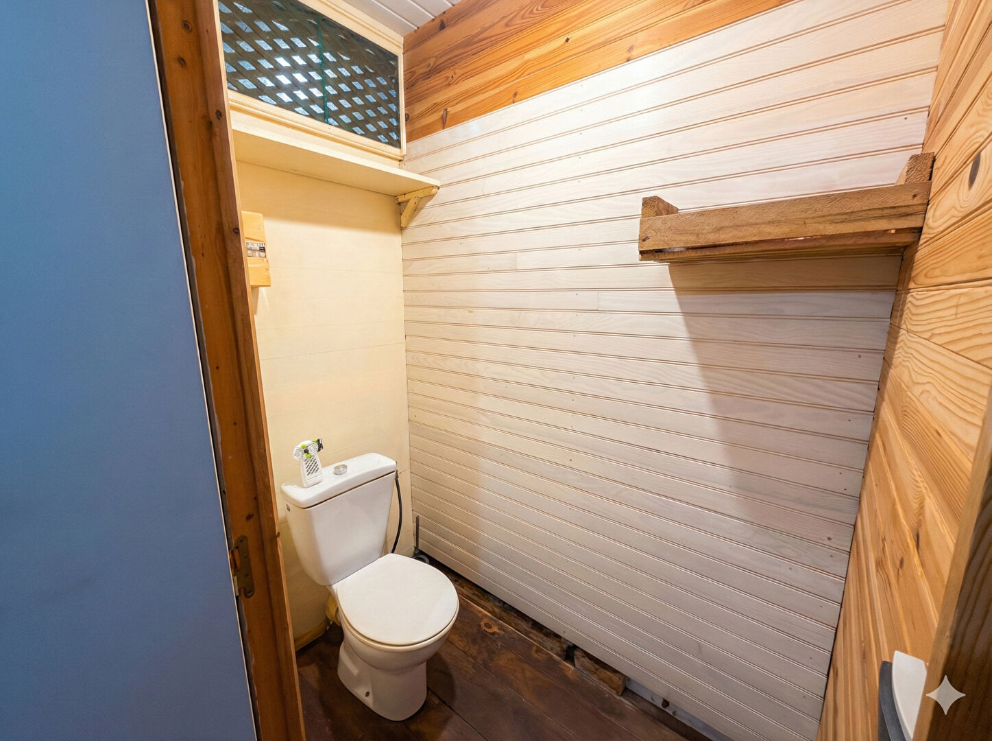 La maison dispose d'un abri voiture pratique et fonctionnel. Autonome en eau tout en bénéficiant de l'électricité courante, elle allie confort moderne et esprit nature.