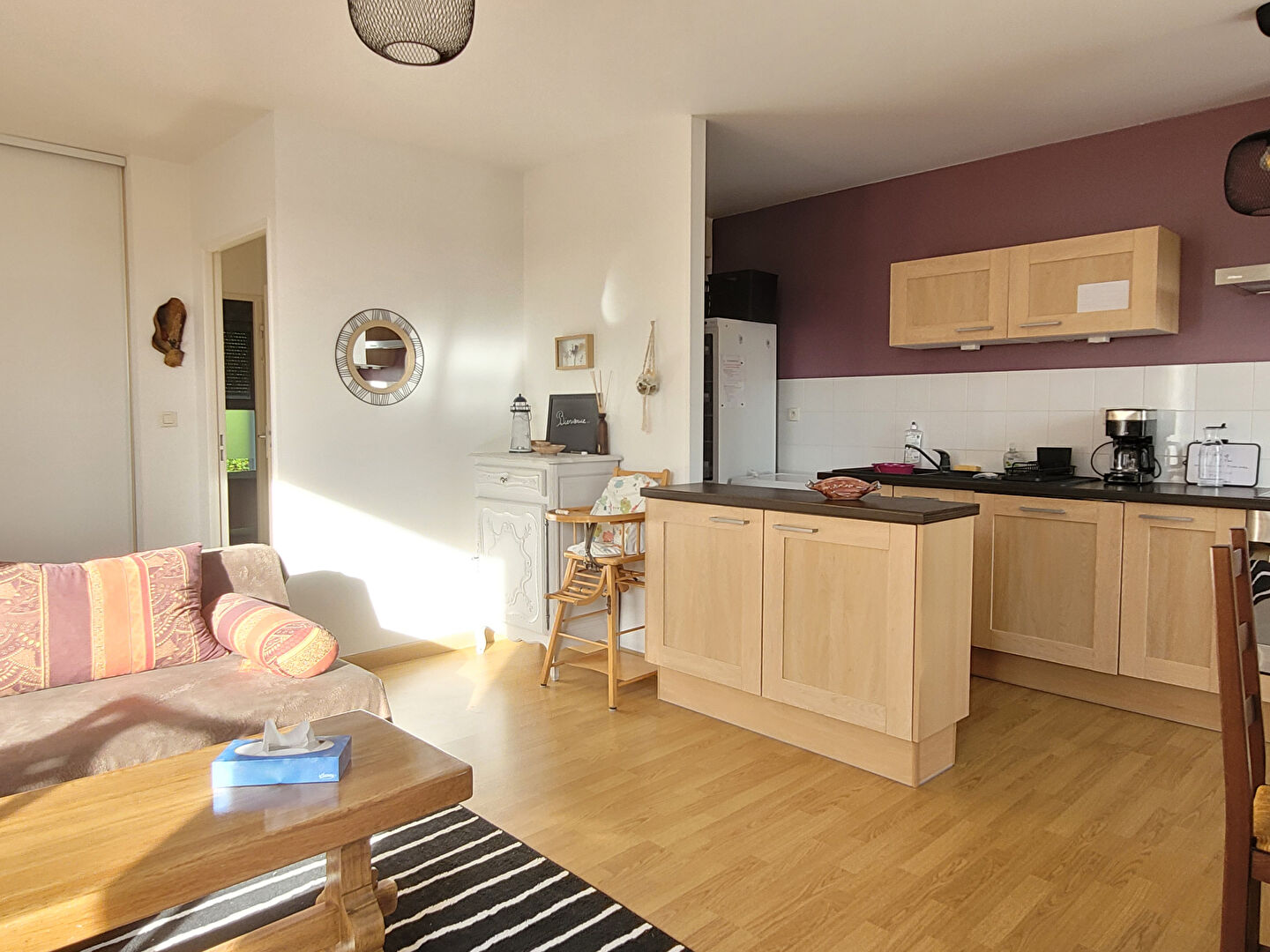 Ce T3 Nantes Sud offre un séjour lumineux avec accès à une terrasse ensoleillée, idéal pour profiter d'un extérieur agréable. Cuisine ouverte et fonctionnelle sur la pièce de vie.