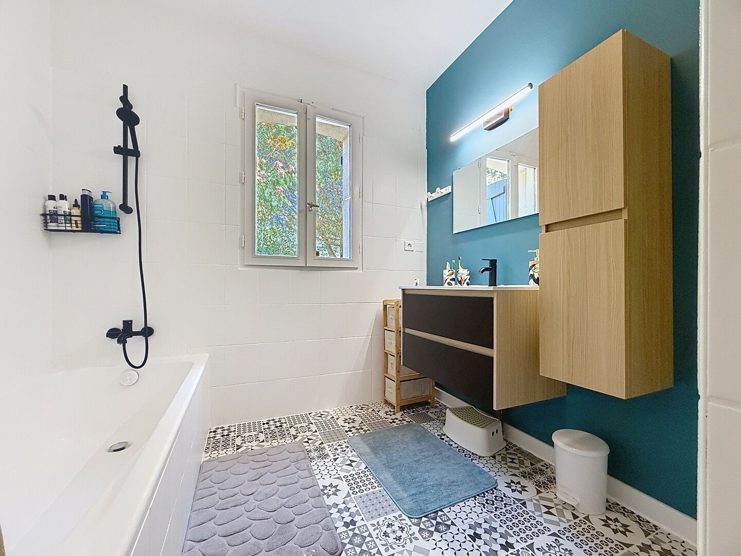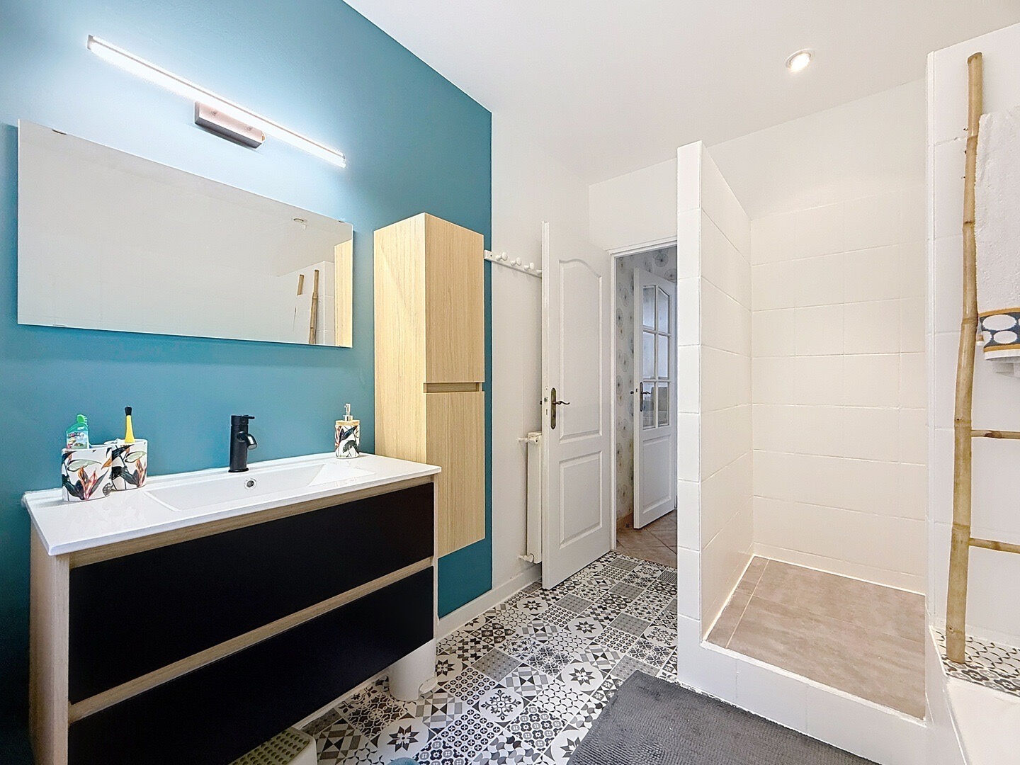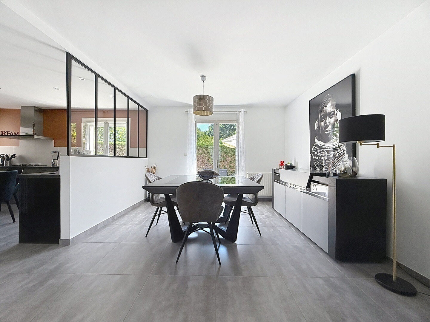 Elle se compose d'une belle pièce de vie traversante Est/Ouest avec poêle à bois, d'une cuisine dinatoire baignée de lumière grâce à sa verrière, et d'une suite parentale en rez-de-chaussée avec salle de bain (douche + baignoire). À l'étage, trois chambres, une salle de bain avec double vasque, et des WC séparés complètent l'espace nuit.