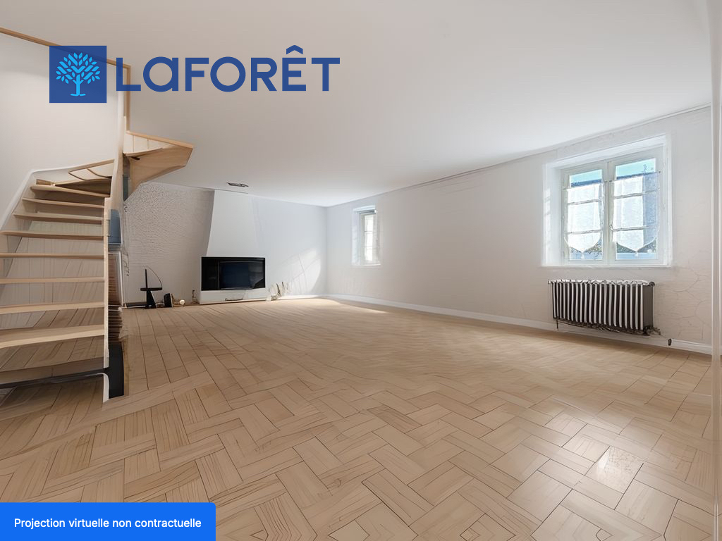 Elle offre une belle pièce de vie lumineuse avec cuisine ouverte, un toilette au rez-de-chaussée, ainsi que trois chambres, un bureau, une salle d'eau et un toilette à l'étage.