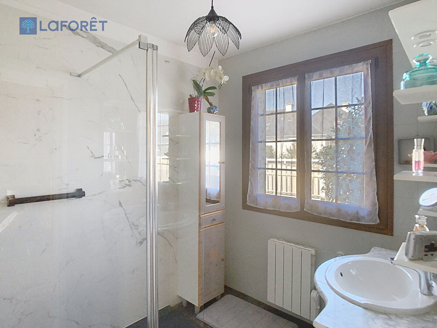 A l'étage : 2 chambres aux beaux volumes, dressing, salle d'eau- wc.