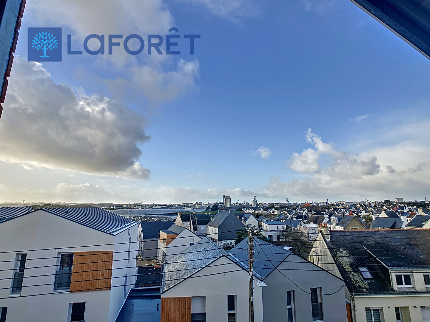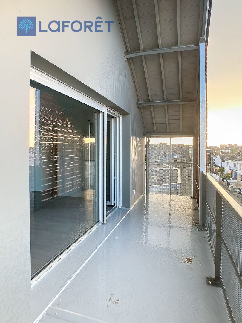 LOCMIQUELIC centre-ville - Situé au 3ème et dernier étage d'une résidence sécurisée avec ascenseur, grand T2 bis comprenant 1 chambre, 1 bureau d'une surface habitable de 62.40 m², balcon de 8.90 m² exposé Ouest.