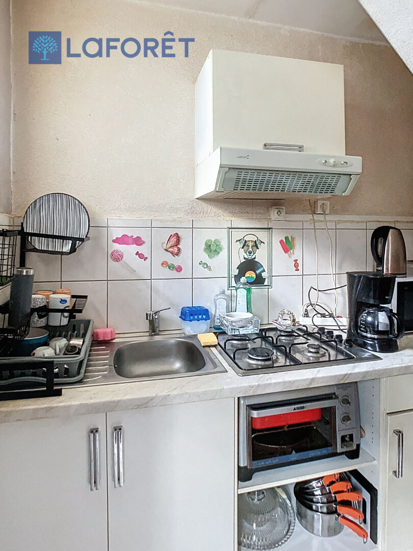 Le premier étage s'ouvre sur un agréable séjour donnant accès à un petit extérieur, idéal pour profiter d'un espace au calme. Il comprend également un espace cuisine équipé d'une kitchenette.