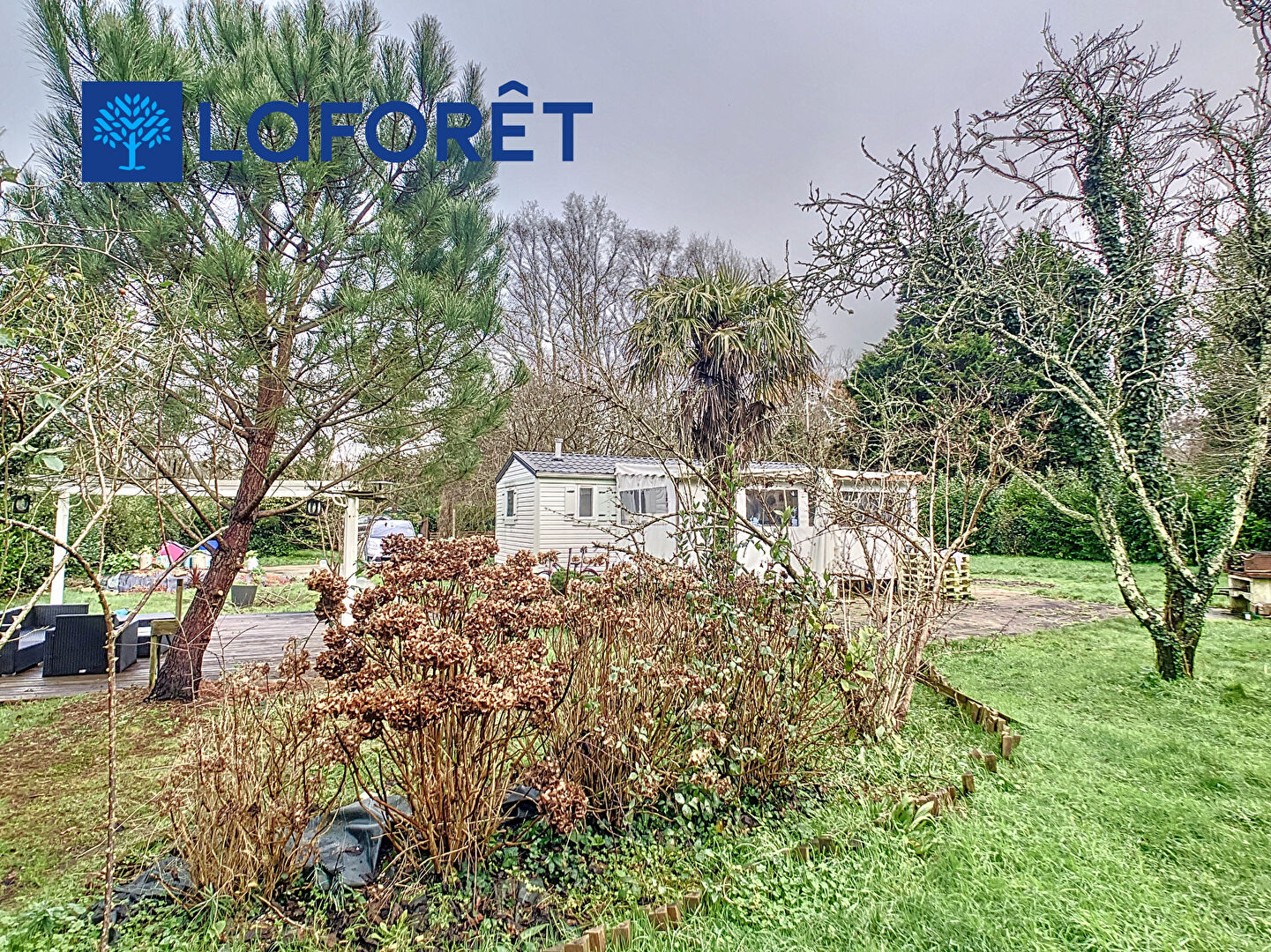 RIANTEC - Sur un terrain de loisirs arboré où il est possible d'y vivre à l'année, mobil- home de 2006 comprenant un séjour avec cuisine ouverte, 3 chambres, une salle d'eau avec WC. Terrasse en bois couverte et Abris de jardin avec eau et électricité.