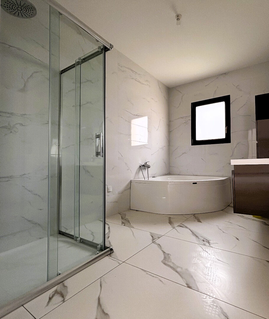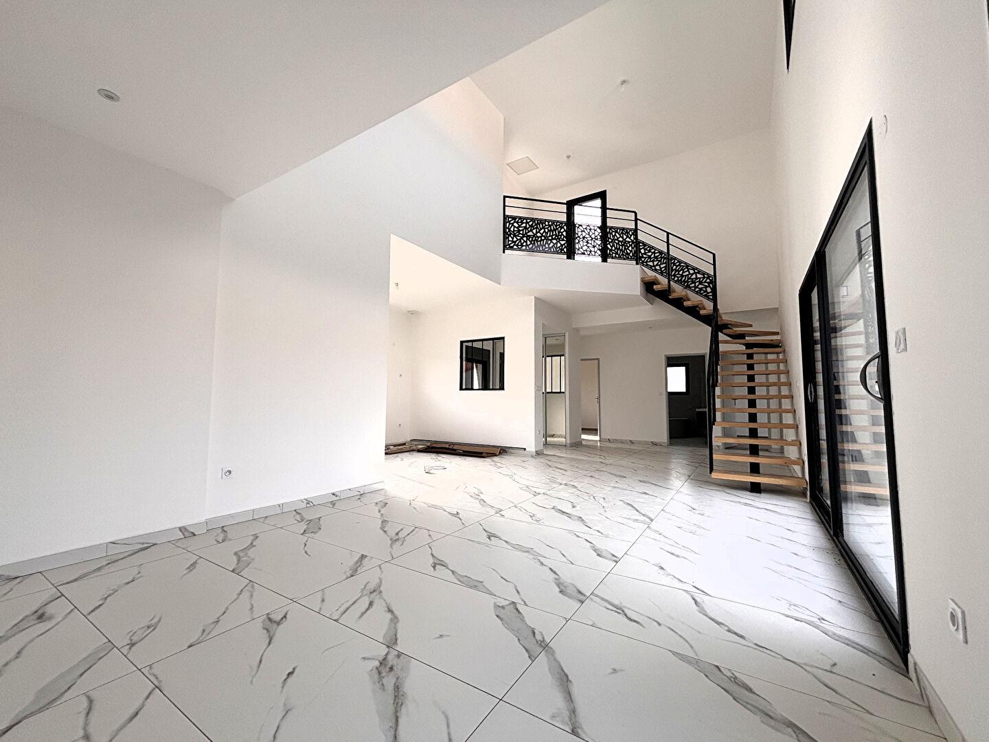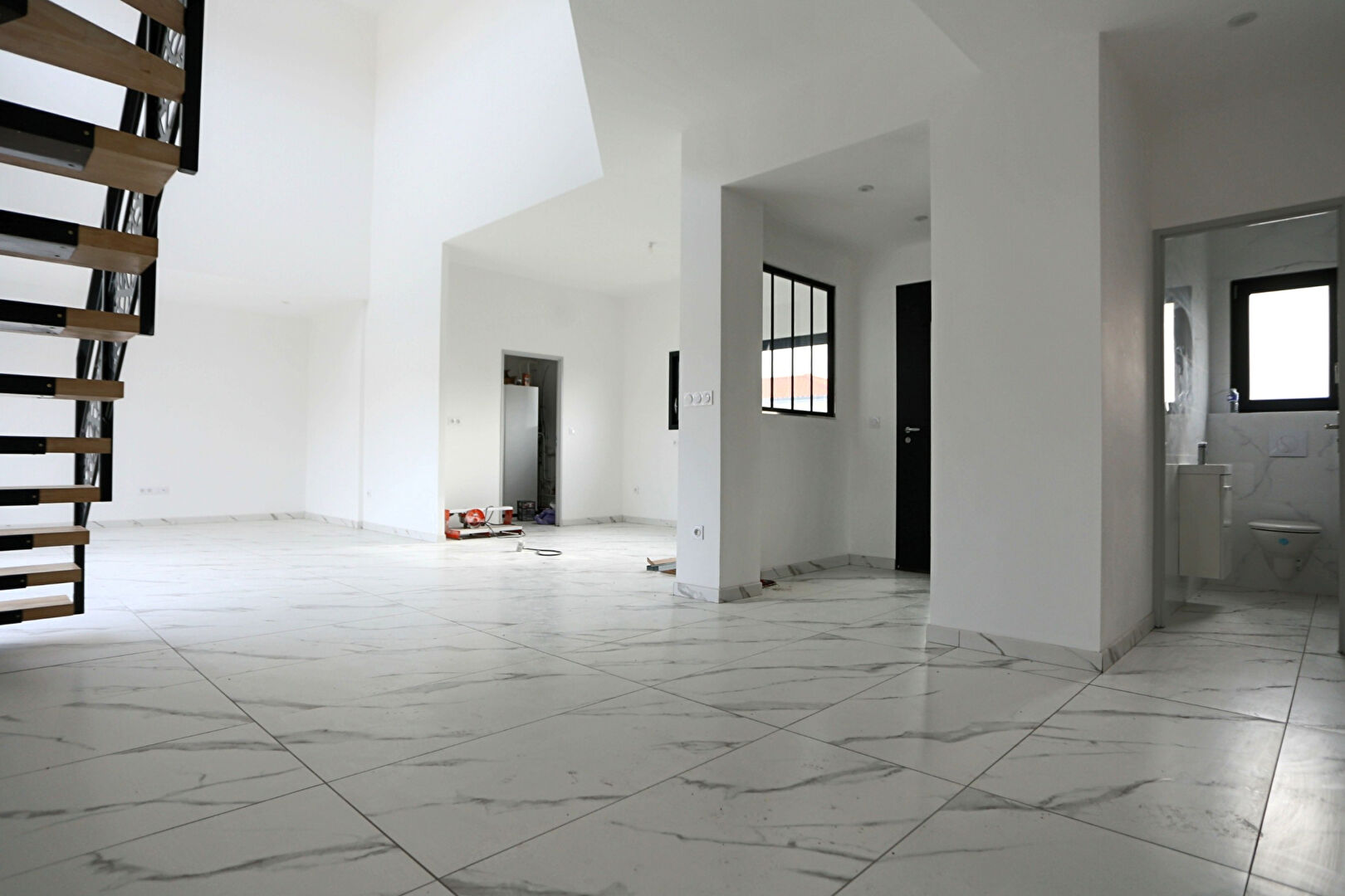 Cette maison vous séduira immédiatement par ses volumes généreux et sa luminosité. Le rez-de-chaussée s'ouvre sur une entrée desservant une vaste pièce de vie d'environ 50 m², comprenant un séjour, un salon et une future cuisine ouverte à créer et à aménager selon vos envies, offrant ainsi un véritable espace convivial, baigné de lumière naturelle grâce à ses grandes ouvertures avec des baies coulissantes. Un cellier, un garage attenant, un WC indépendant ainsi qu'une salle d'eau équipée d'une douche et d'une baignoire.