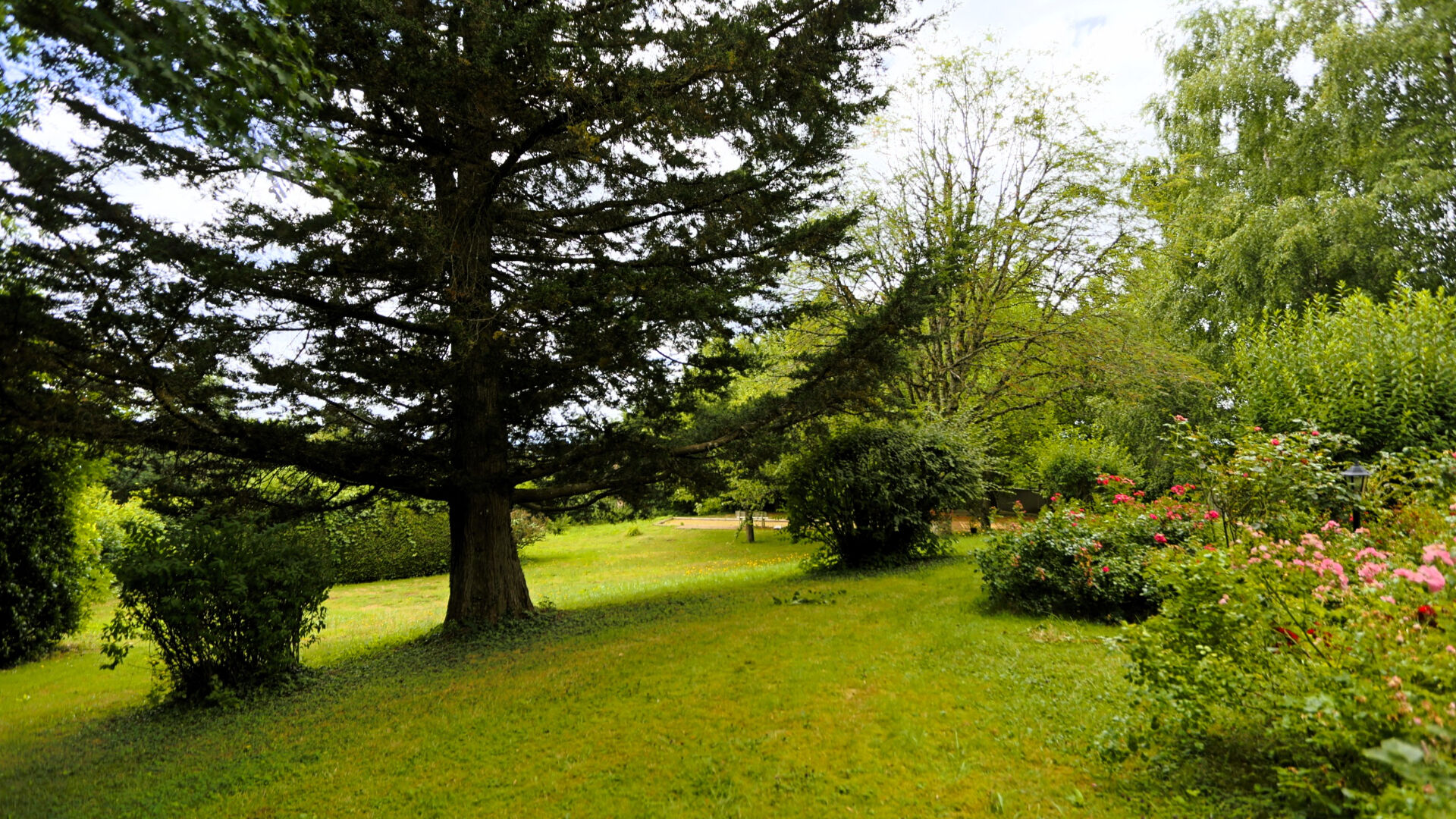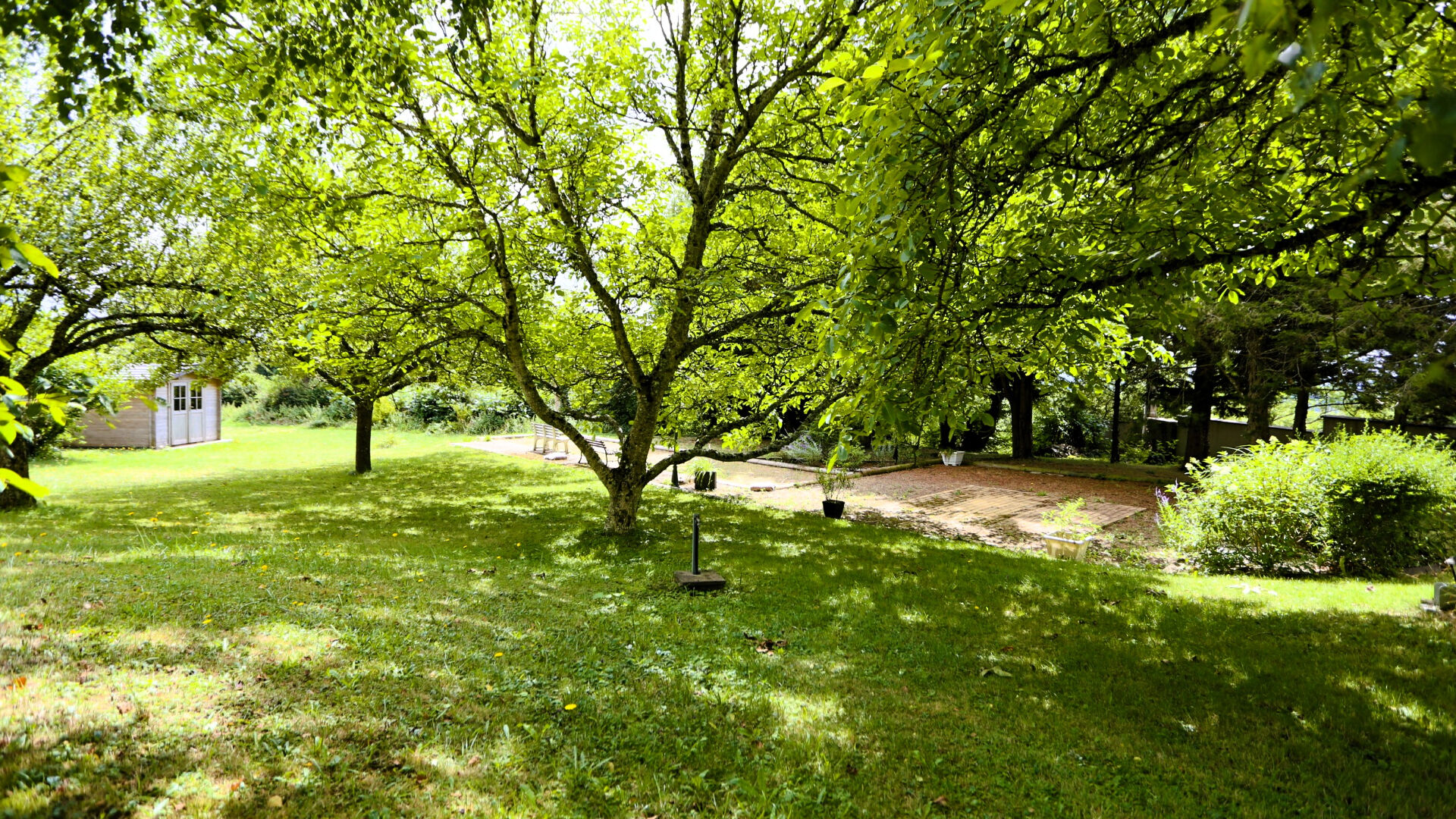 Vous apprécierez particulièrement le beau terrain arboré et paysagé, très bien entretenu, avec de nombreux arbres. Une terrasse ombragée, un terrain de pétanque situé sous les arbres, un espace dédié pour un bureau ainsi qu'un chalet sur le terrain offrent un espace extérieur convivial et apaisant.