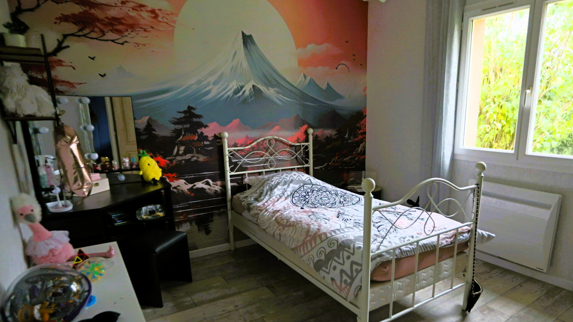 À l'étage, une mezzanine généreuse offre un espace polyvalent : bureau, salle de jeux ou chambre d'amis selon les besoins.