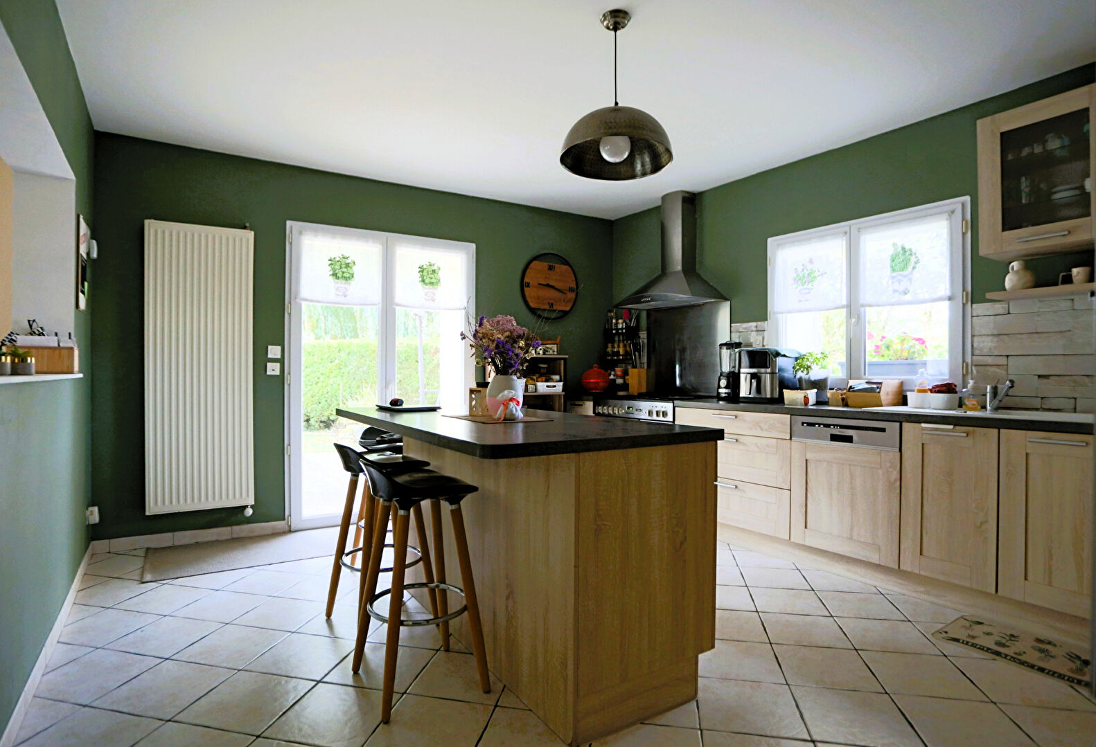 Les volumes intérieurs sont généreux et lumineux: grand salon-salle à manger traversant avec baie vitrée, cuisine semi-ouverte avec accès extérieur, trois chambres dont deux avec grands placards, dressing, atelier, buanderie et nombreux rangements.