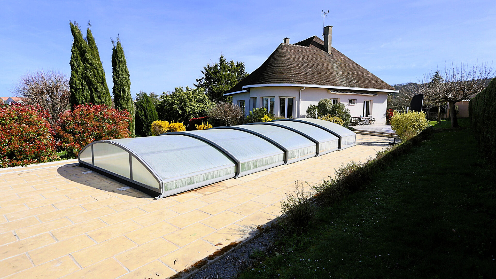 À l'extérieur, vous profiterez pleinement des beaux jours grâce à une agréable terrasse et une piscine, parfaites pour des moments de détente en famille ou entre amis.