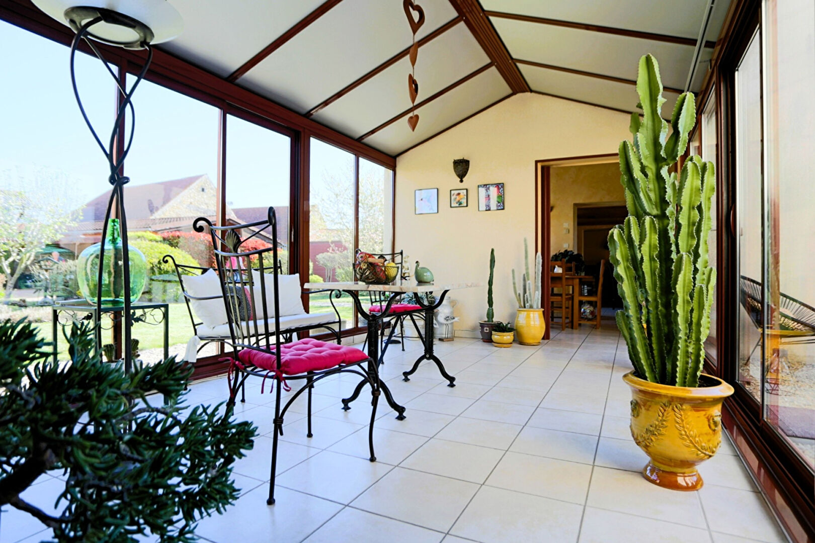 Dès l'entrée, le charme opère avec un patio de 18 m², véritable espace lumineux qui dessert une cuisine équipée avec coin repas, idéal pour les moments du quotidien, et s'ouvre sur une spacieuse pièce de vie de 50 m² comprenant salon et salle à manger, parfaite pour recevoir en toute convivialité.