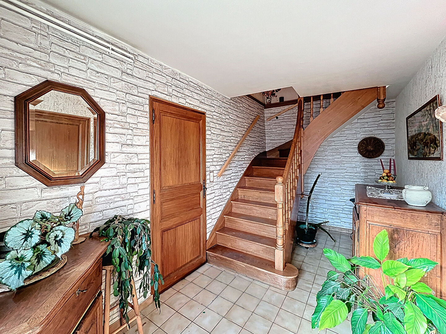 Elle se compose d'un sous-sol avec entrée, pièce technique pouvant être aménagée en cuisine d'été, garage et cave. A l'étage, un sas desservant les pièces de vie, cuisine, salon-séjour, 3 chambres, salle de bain, wc. Chauffage fuel et poêle à bois . Le tout sur un terrain de 572 m² joliment arboré. Travaux de rafraichissement à prévoir.
