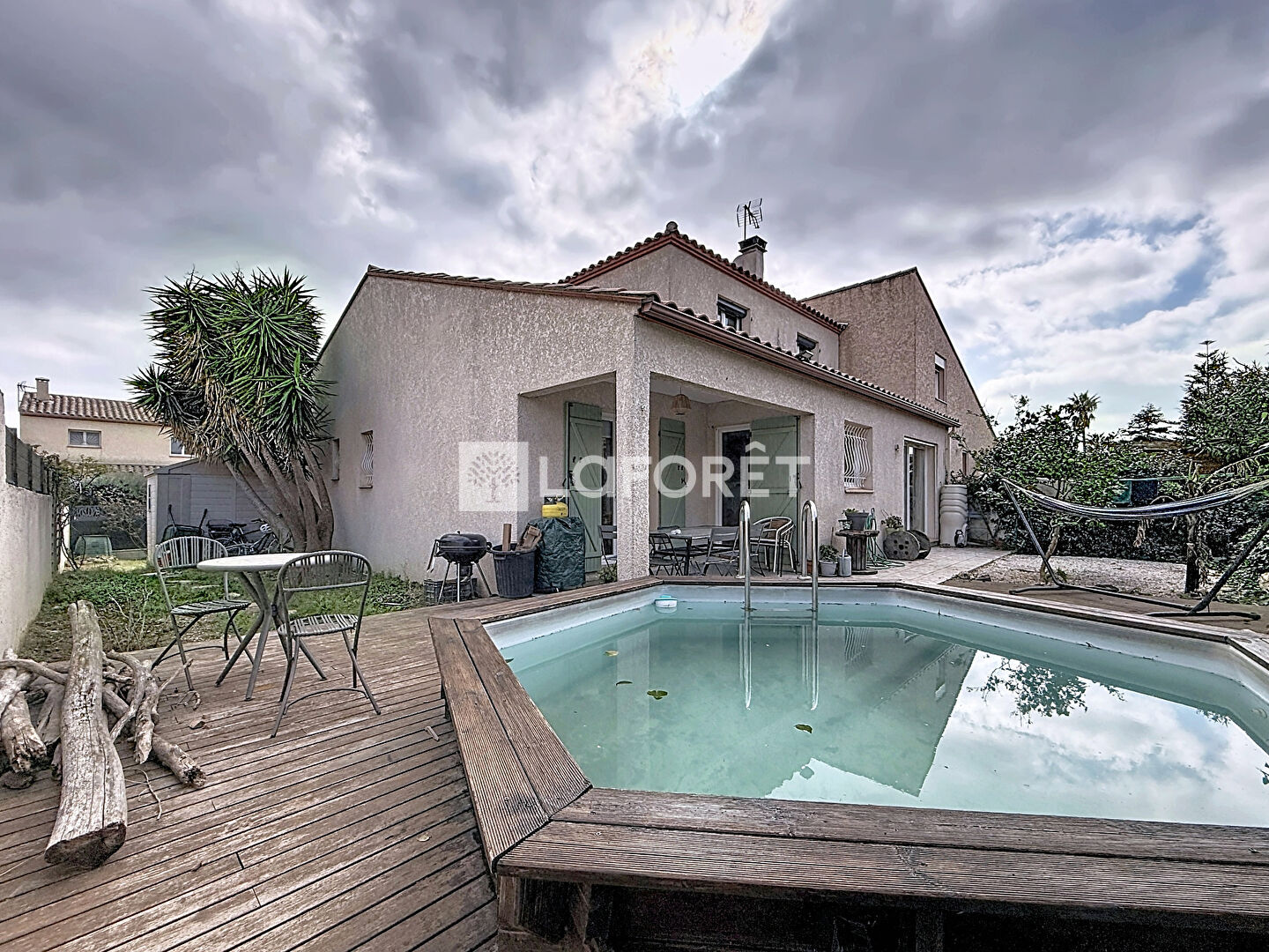 Cabestany au bout d'une impasse, Villa trois faces comprenant un séjour/cuisine, 5 chambres dont deux au rez de chaussée, une salle d'eau, une salle de bain, un garage et une piscine.