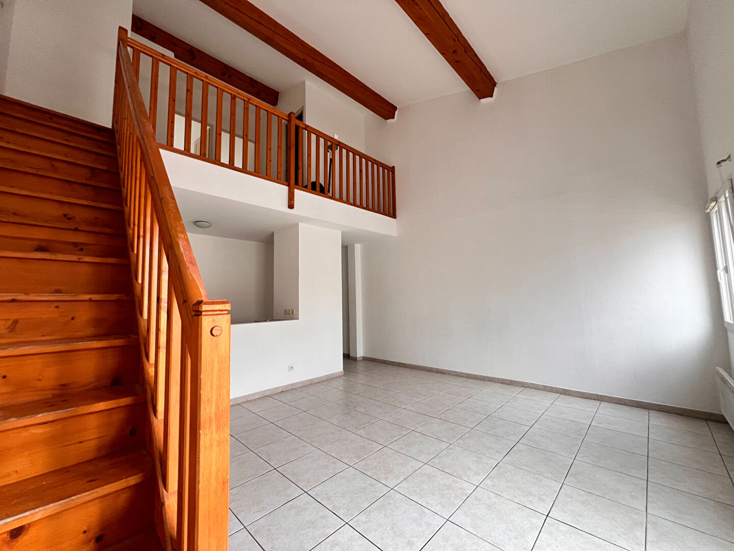 Du cachet avec le plafond cathédrale, très lumineux, faibles charges de copropriété.