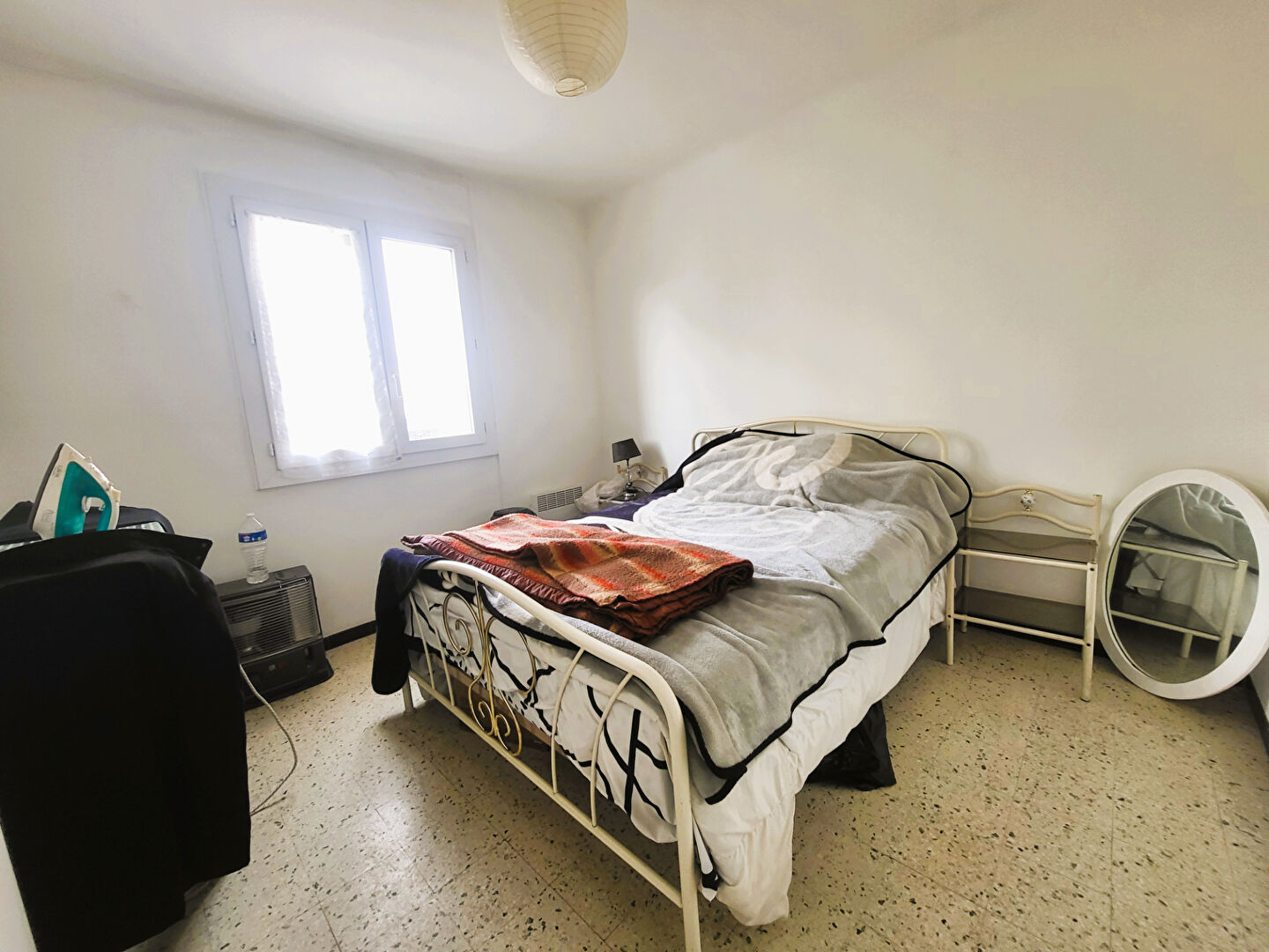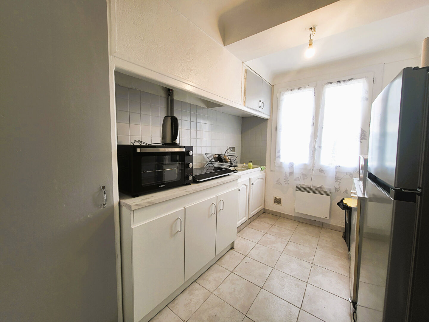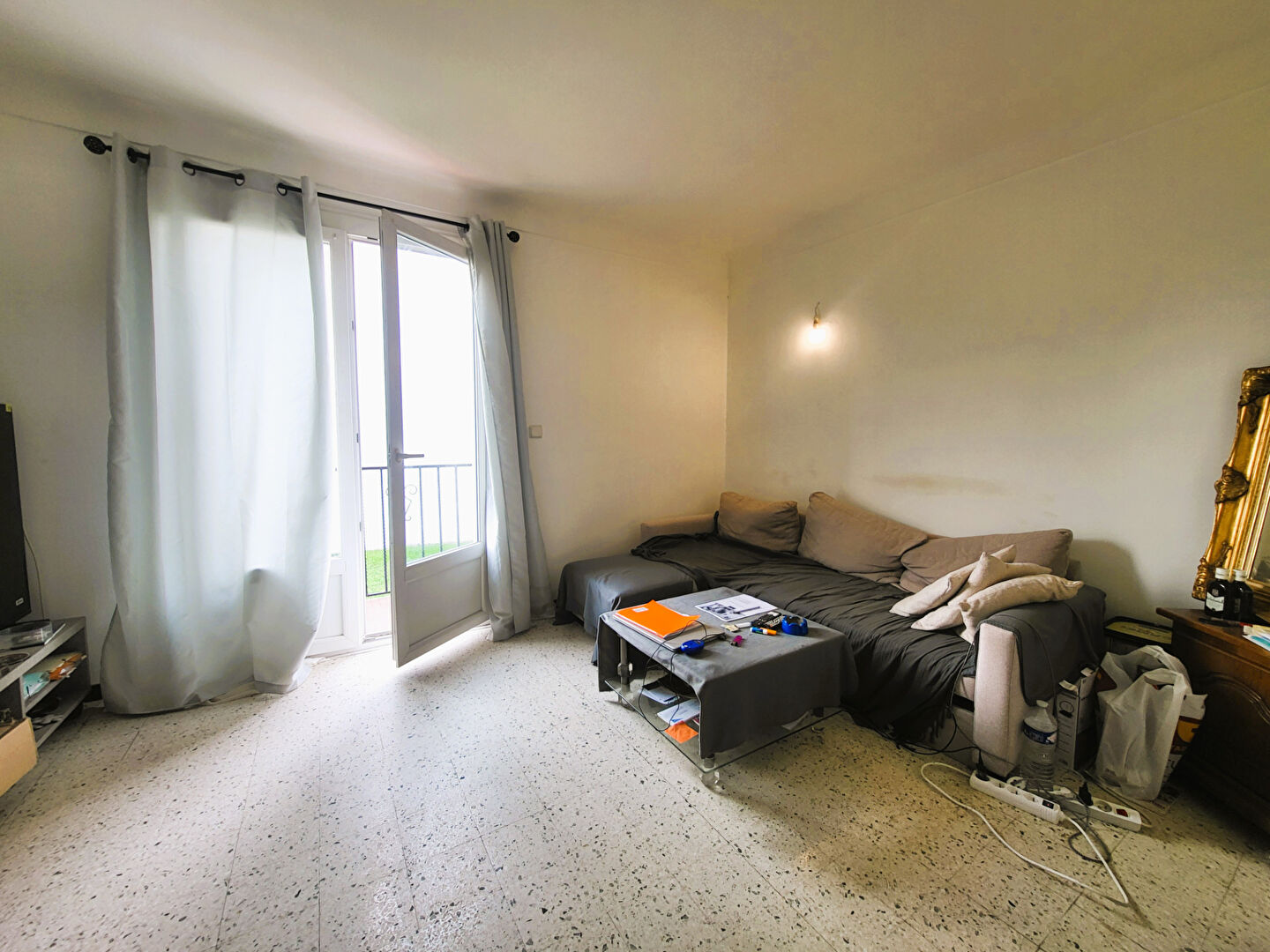 Appartement F3 avec salon, cuisine, salle d'eau, WC séparé et 2 chambres.