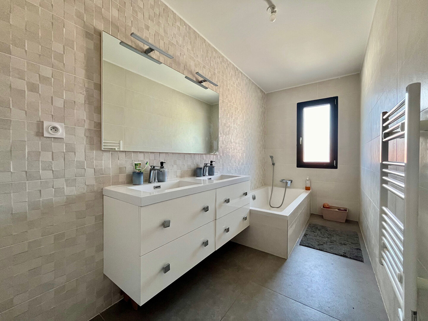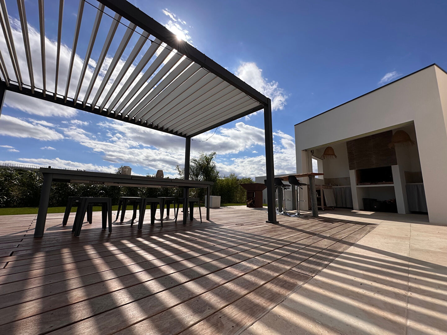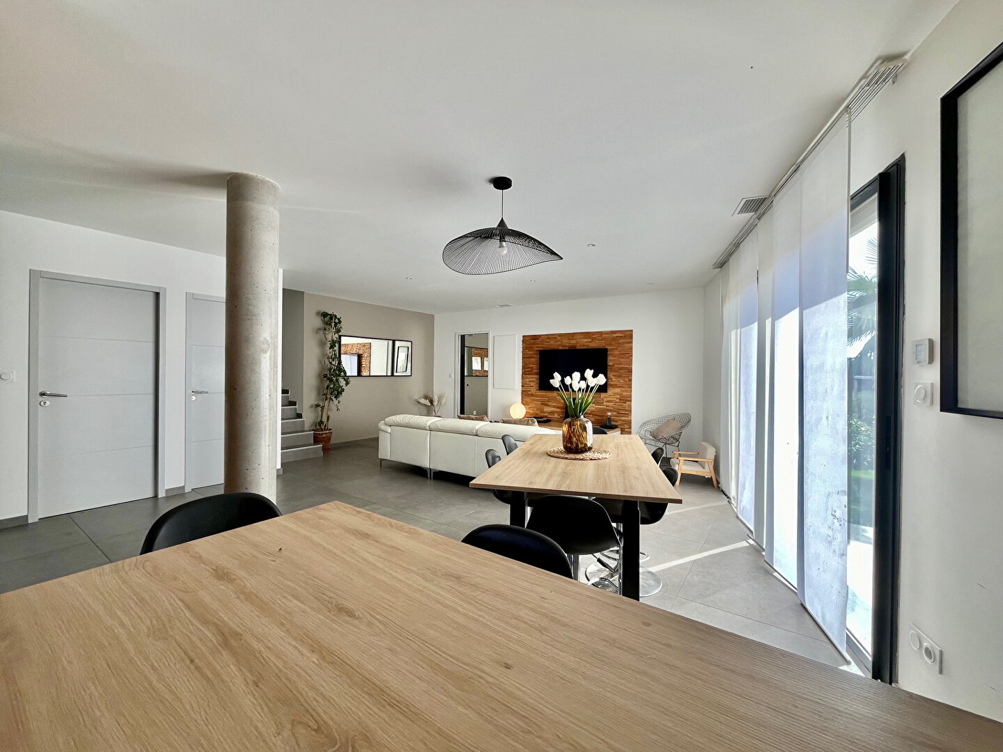 Elle se compose d'un séjour/cuisine US de 50m² env, 3 chambres dont uns suite parentale en rdc,clim gainable , cuisine US, dressing aménagé, cuisine d'été, grand cabanon en dur, garage/buanderie isolé carrelé, terrasse bois exotique, pergola bioclimatique, chauffe eau thermodynamique, arrosage automatique, vidéo surveillance ..