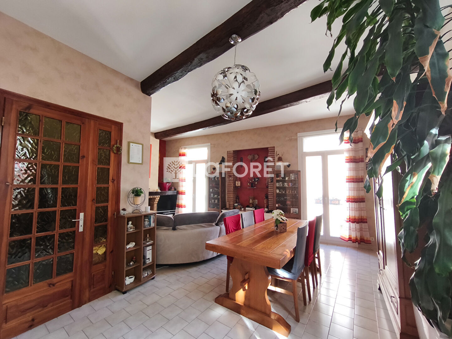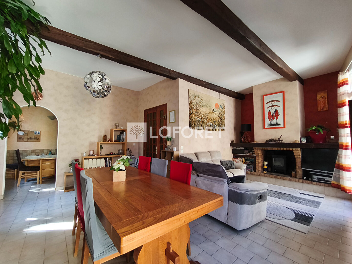 Séjour/cuisine/salle à manger de 47m² avec cheminée, 4 chambres dont 2 au RDC, 1bureau, SDE et WC.