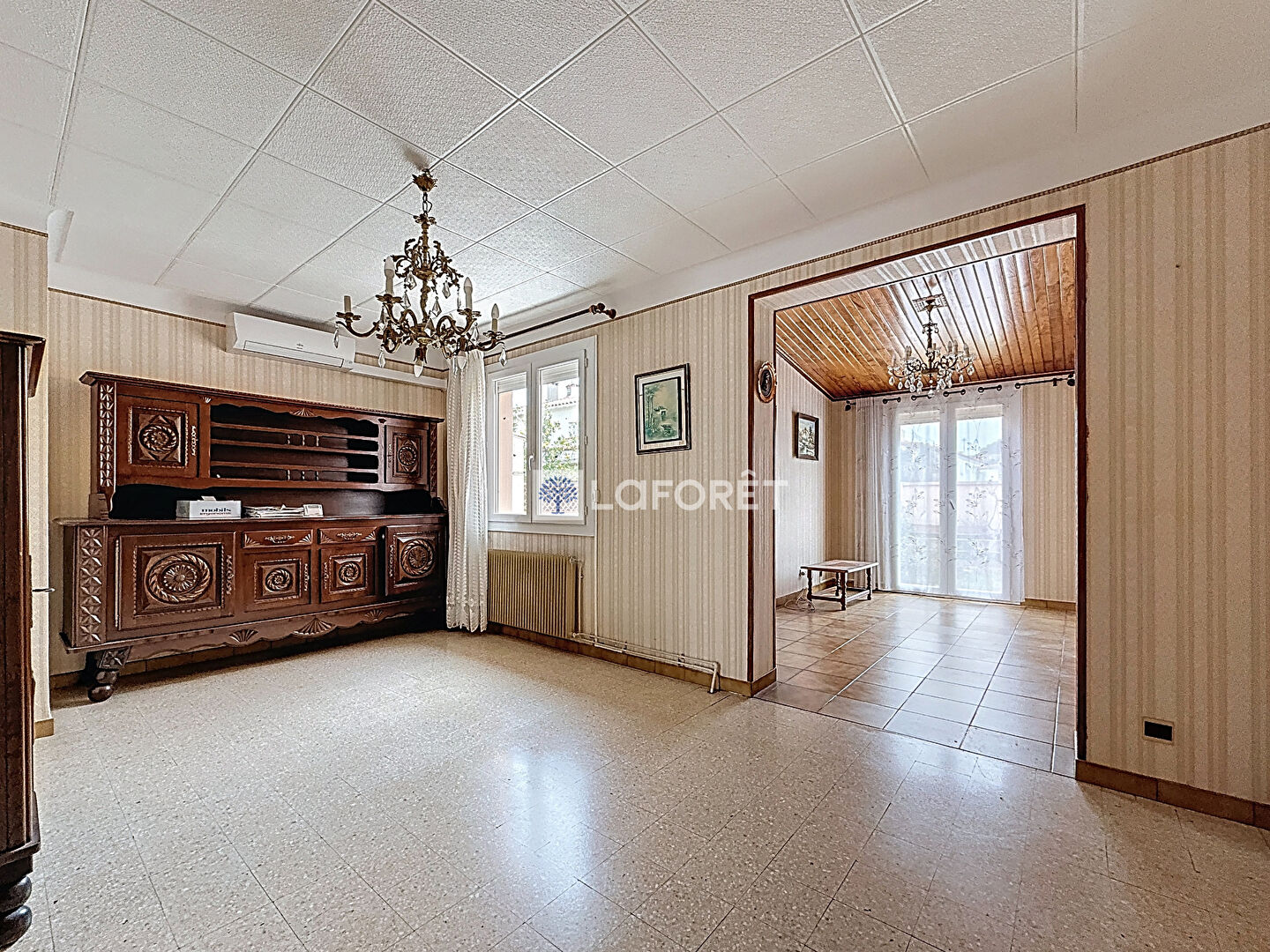 Saint Estève, dans une impasse, maison comprenant un salon/séjour, une cuisine, trois chambres, deux salles d'eau, une véranda, un garage et jardin avec cabanon et barbecue.