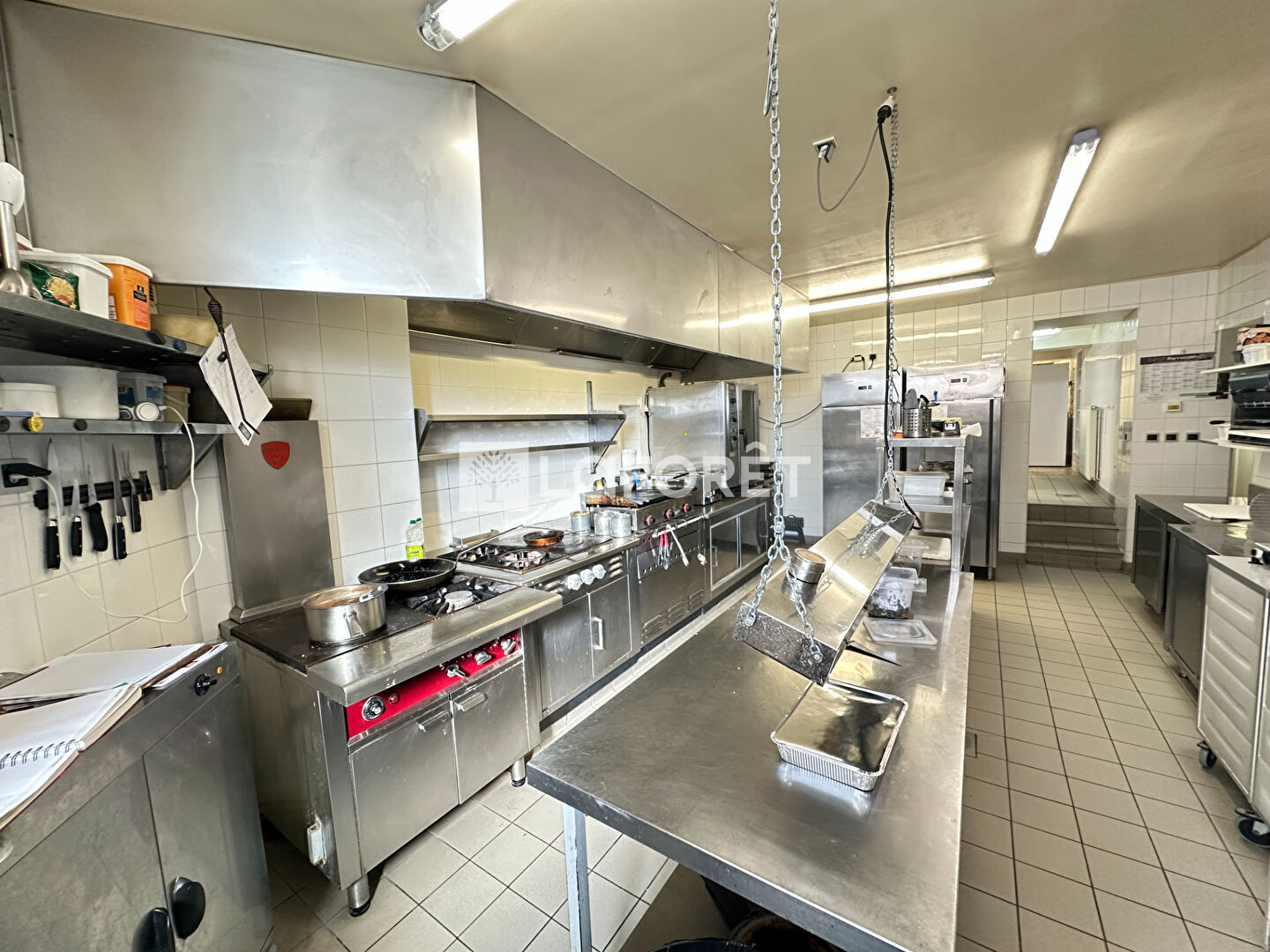 Un restaurant de 385 m² : comprenant plusieurs salles de réception, une cuisine professionnelle équipée, une chambre froide, une plonge, des espaces de stockage et un bar.