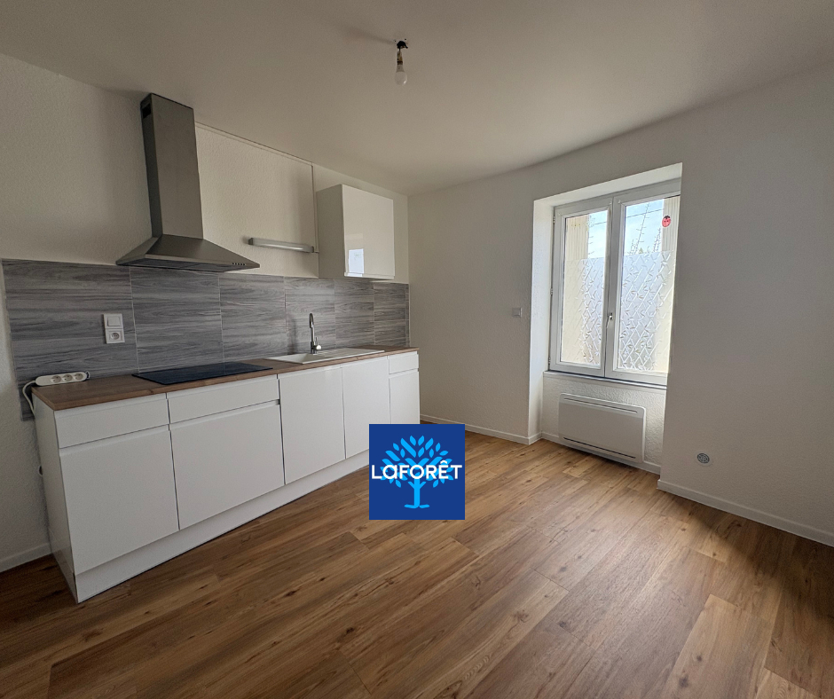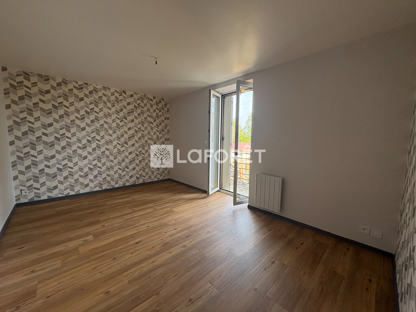 Appartement entièrement rénové de 54 m² comprenant un séjour donnant sur une terrasse avec accès au jardin, cuisine équipée, une chambre, une salle d'eau, et un WC séparé.