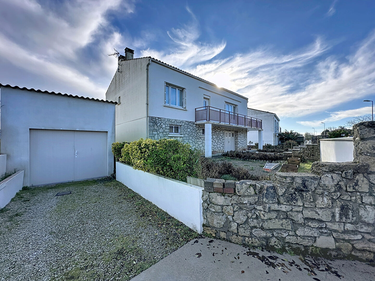 En rdc cuisine d'été ouvrant sur la véranda, chambre, grand garage.