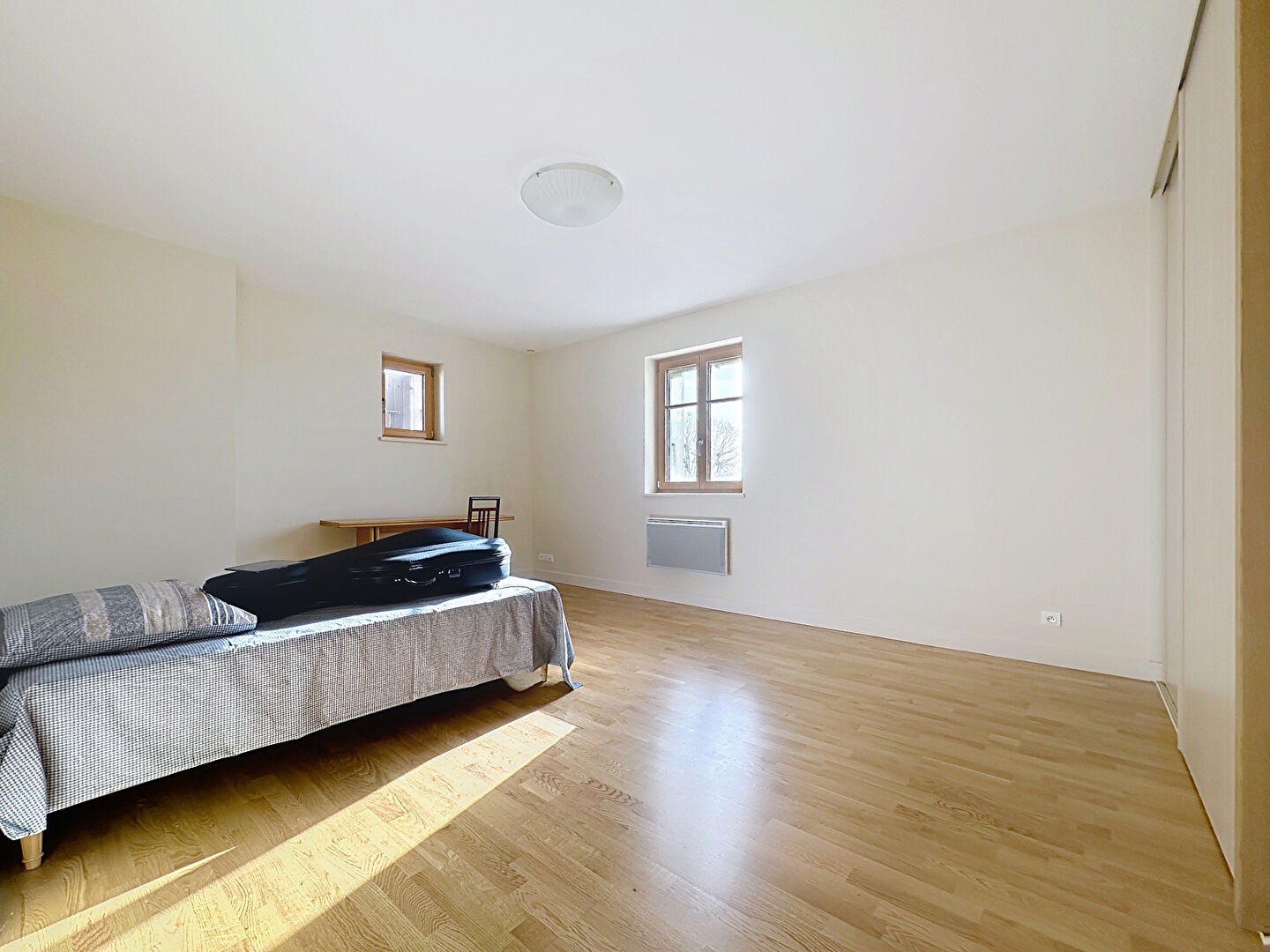 La partie nuit se compose de 3 chambres, dont une chambre en rez-de-chaussée avec sa salle d'eau, offrant un vrai confort de vie de plain-pied. L'ensemble dispose de 2 salles d'eau et 2 baignoires, répondant parfaitement aux besoins d'une famille.